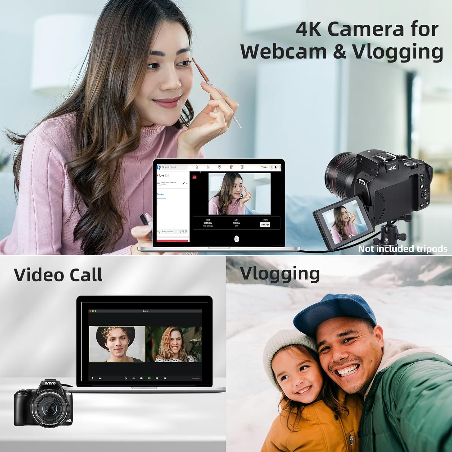 【WiFi connection and webcam function】 Ordro's new 4k digital camera allows you to easily share and transfer images and videos. Allows you to share photos and videos on social networks the first time. And you can also use it as a webcam by choosing “PC mode” to enjoy video chat or live streaming.