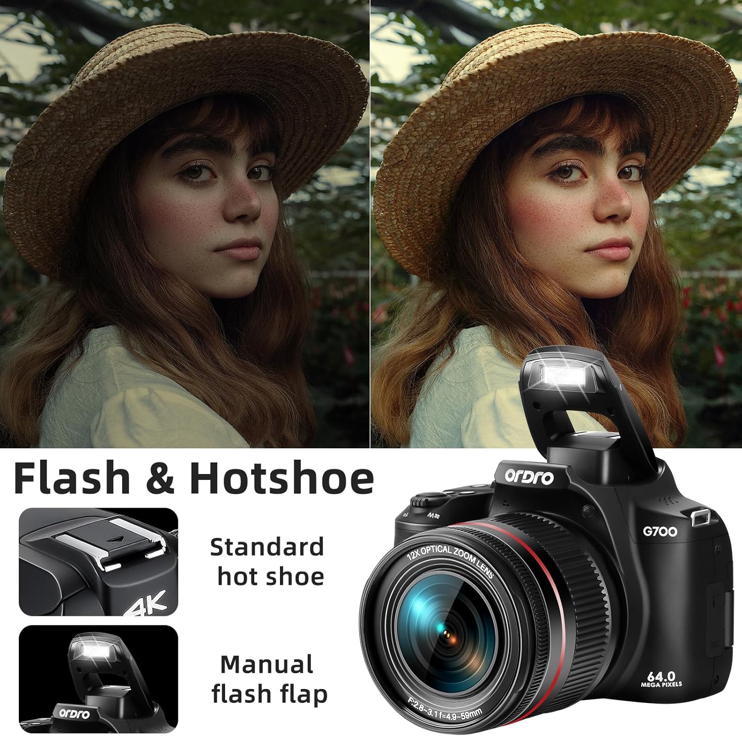 【Compact Camera with Flash】The compact travel camera weighs 2 pounds and you can hold it directly in your hand or hang it with our equipped shoulder strap. You can take photos or record videos manually for a long time without getting tired, and you can also easily store the portable travel digital camera in your bag. In addition, the Ordro digital camera for photography and video has its built-in flash, so you can take clear photos and videos in darker environments, and record the humanities you want to record on a beautiful and cozy night!