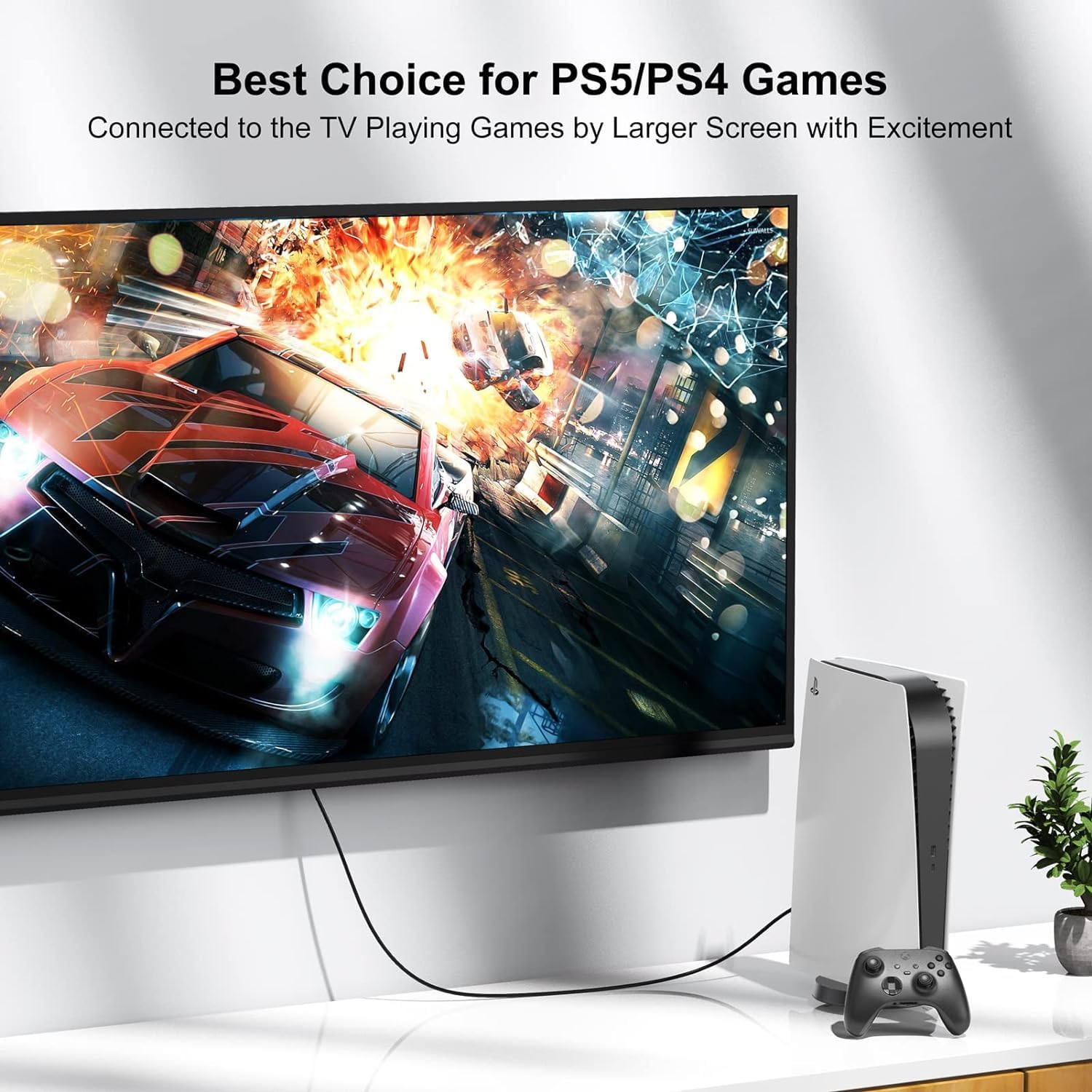 【Super Performance】Gold-plated connectors, bare copper conductors, and foil and braid shielding of the HDMI cable provide superior cable performance and stable signal connectivity. Compatible with HDMI Switchers, HDTV, Blu-ray Player, Roku, Fire TV, Laptop, Projector, Switcher, Xbox, PS3/PS4/PS5, etc.