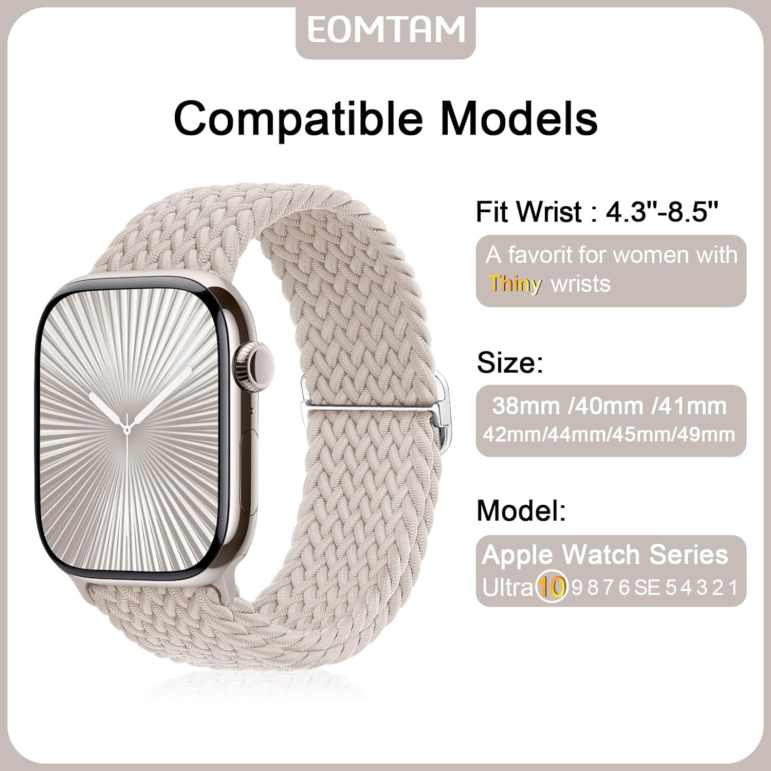 Compatible models 【】: Our compatible elastic braided bands for Apple Watch 38 mm 44 mm 41 mm 42 mm 44 mm 45 mm 46 mm 49 mm wide for female women; Compatible with Apple Watch Ultra 2/1 Series 10, 9, 8,7,6, SE, 5.4, 3, 2.Note: Just Sport Band, no watch is included.