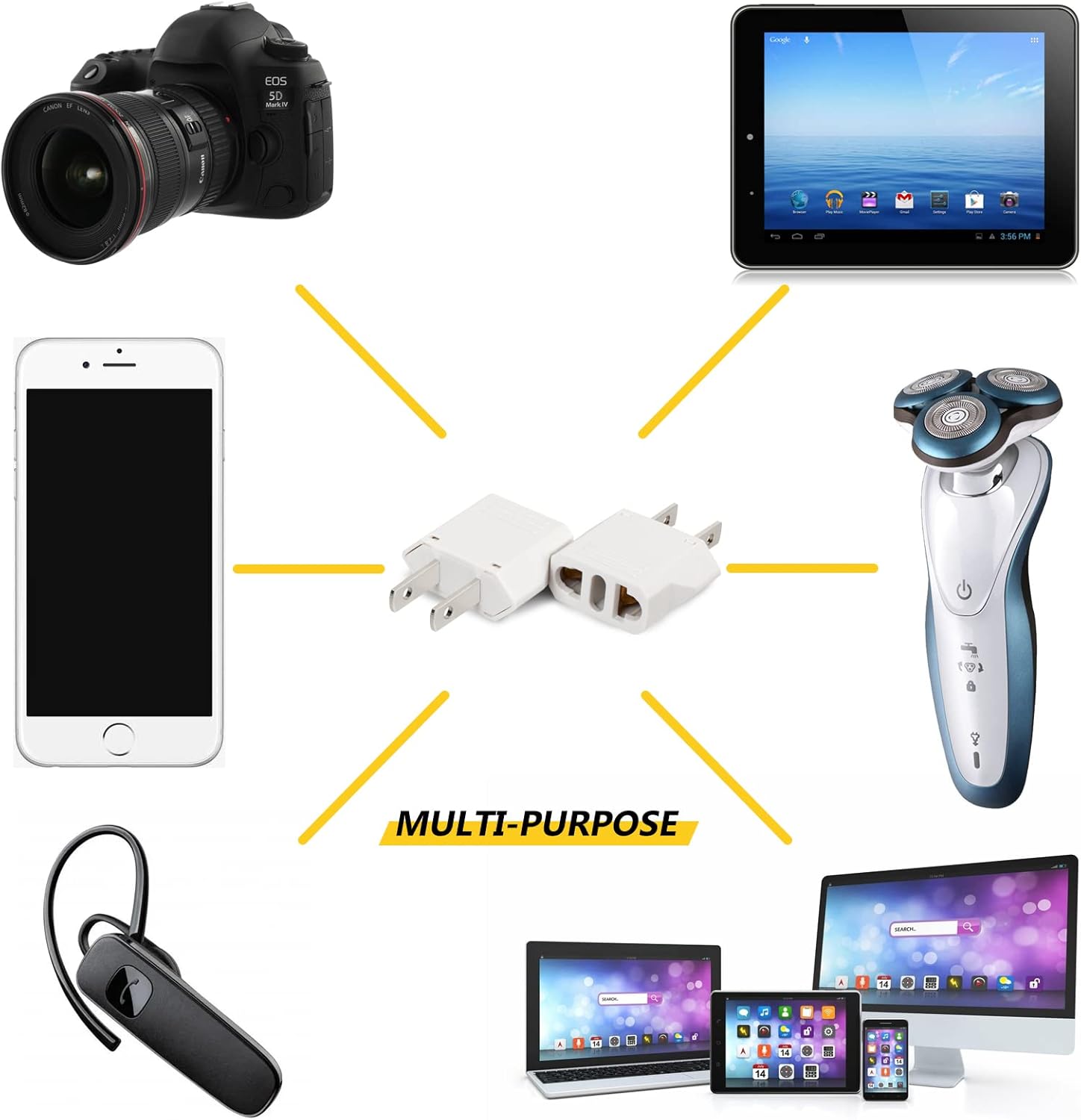 Use of multiple uses: small, compact and light plug adapters are perfect for traveling. These very small wall adapters can be used to load smartphones, bluetooth speakers, energy banks, tablets, shave, laptops, etc. Simply press hard on the plug to use.