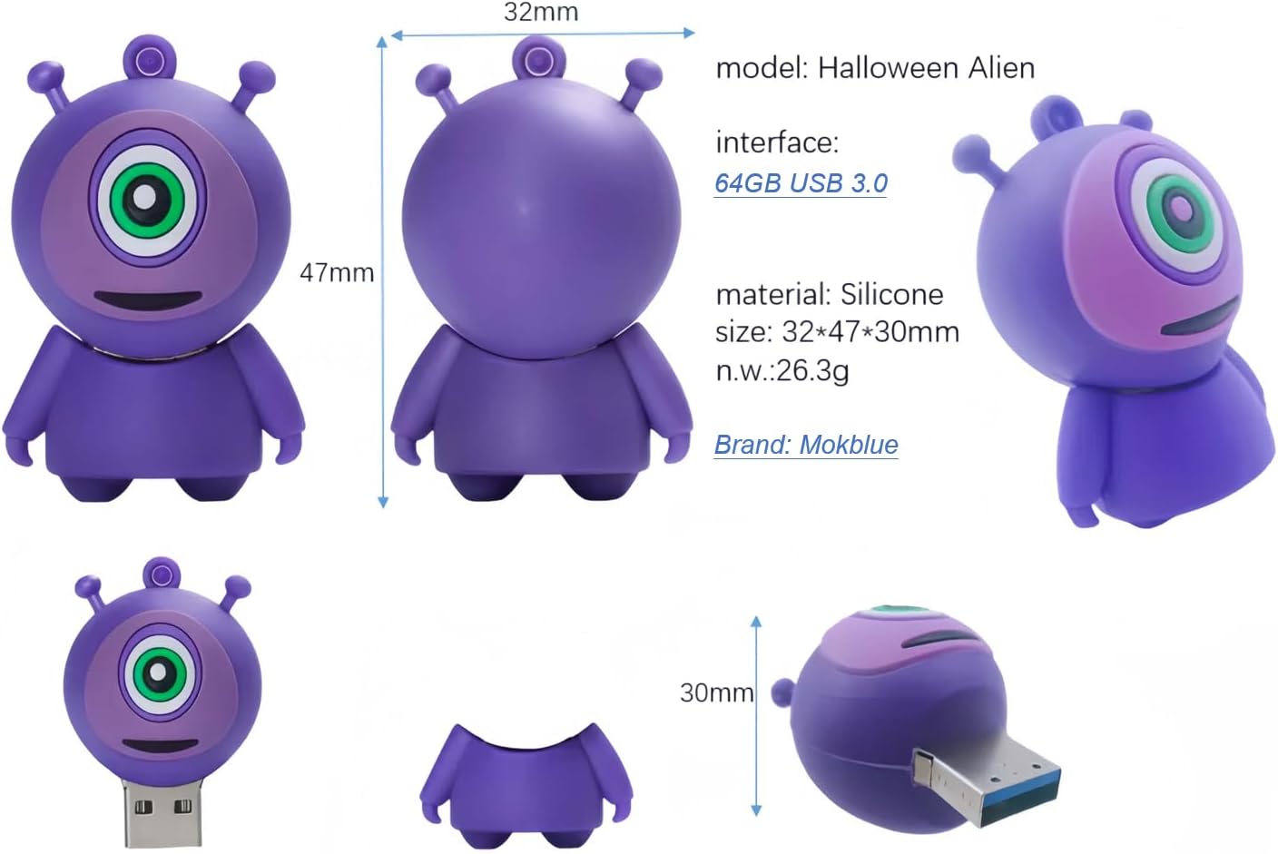 Product size 32*47*30 mm, net weight 26.3g. The beautiful memory lever in the form of Halloween, USB 3.0 Flash Unit of 64 GB, novelty and interesting thumb impulses for data storage.