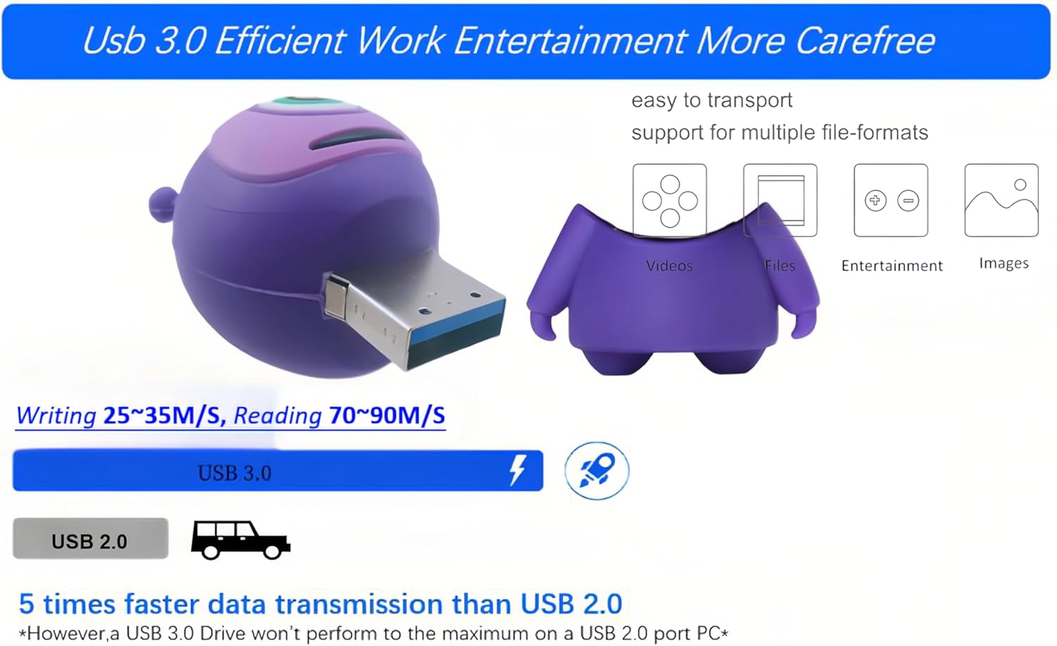 5x experience transfer faster than USB 2.0, move a full-length film to the unit in less than 30 seconds, based on a MPEG-4 video transfer of 1.2GB with USB 3.0 host device; The results may vary according to the host device, file attributes and other factors