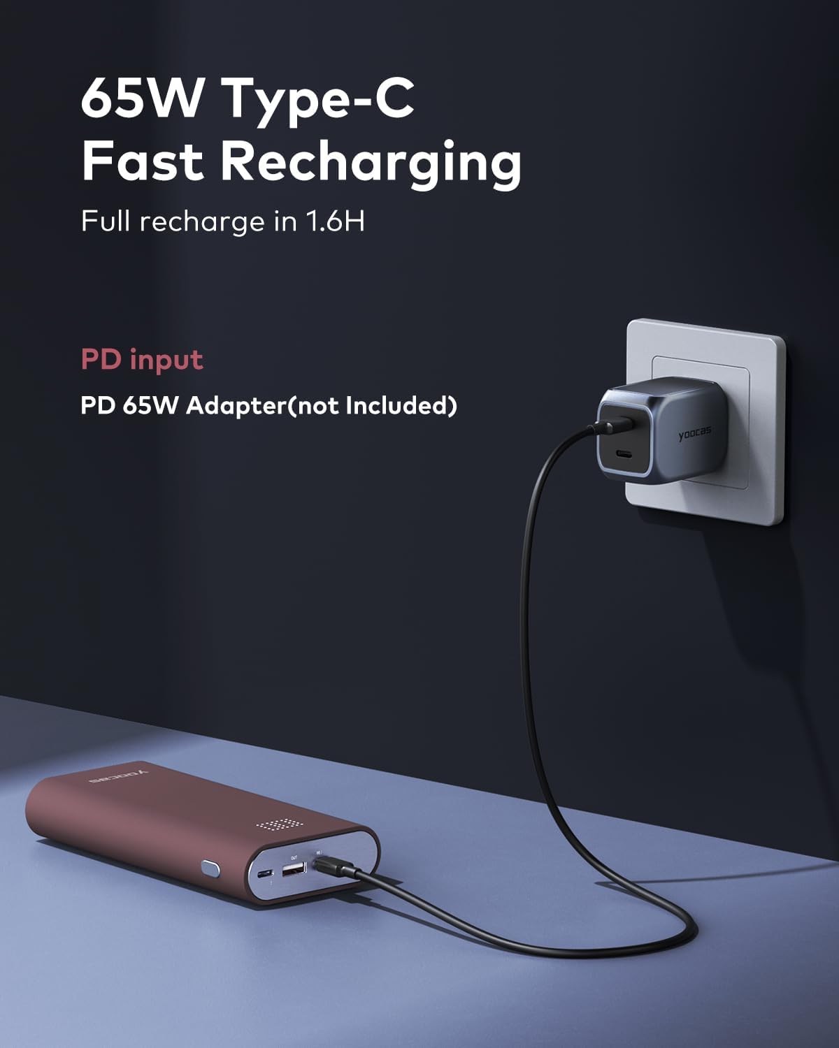 [65W SUPER FAST CHARGING]-65W loading power means that this PowerBank can not only be the loader of your cell phone, but it can also be the portable loader of your laptop, 65W Power can load your Macbook Pro up to 50% in 30 minutes. You can meet all your daily load -device charges