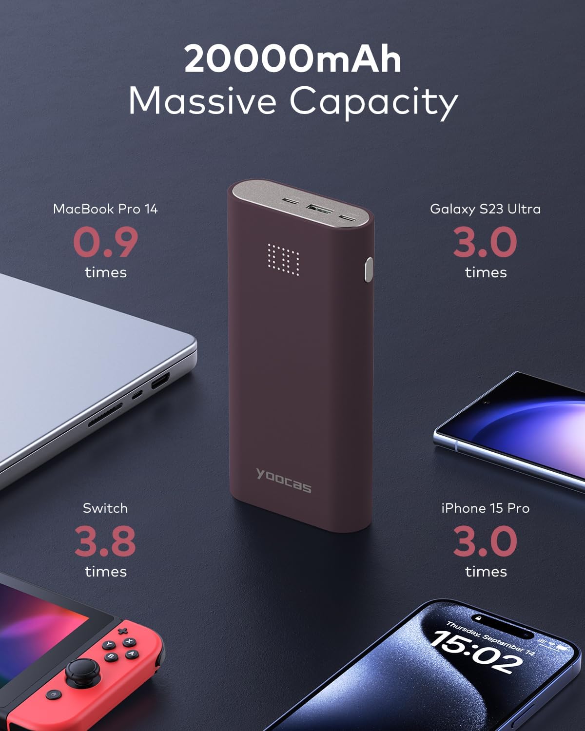 65W POWER BANK- 20000MAH PORTAL CHARGER WITH USB-C FAST CH …