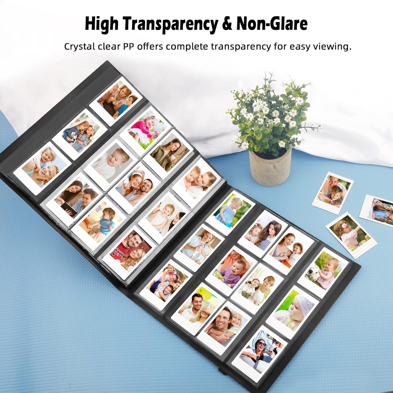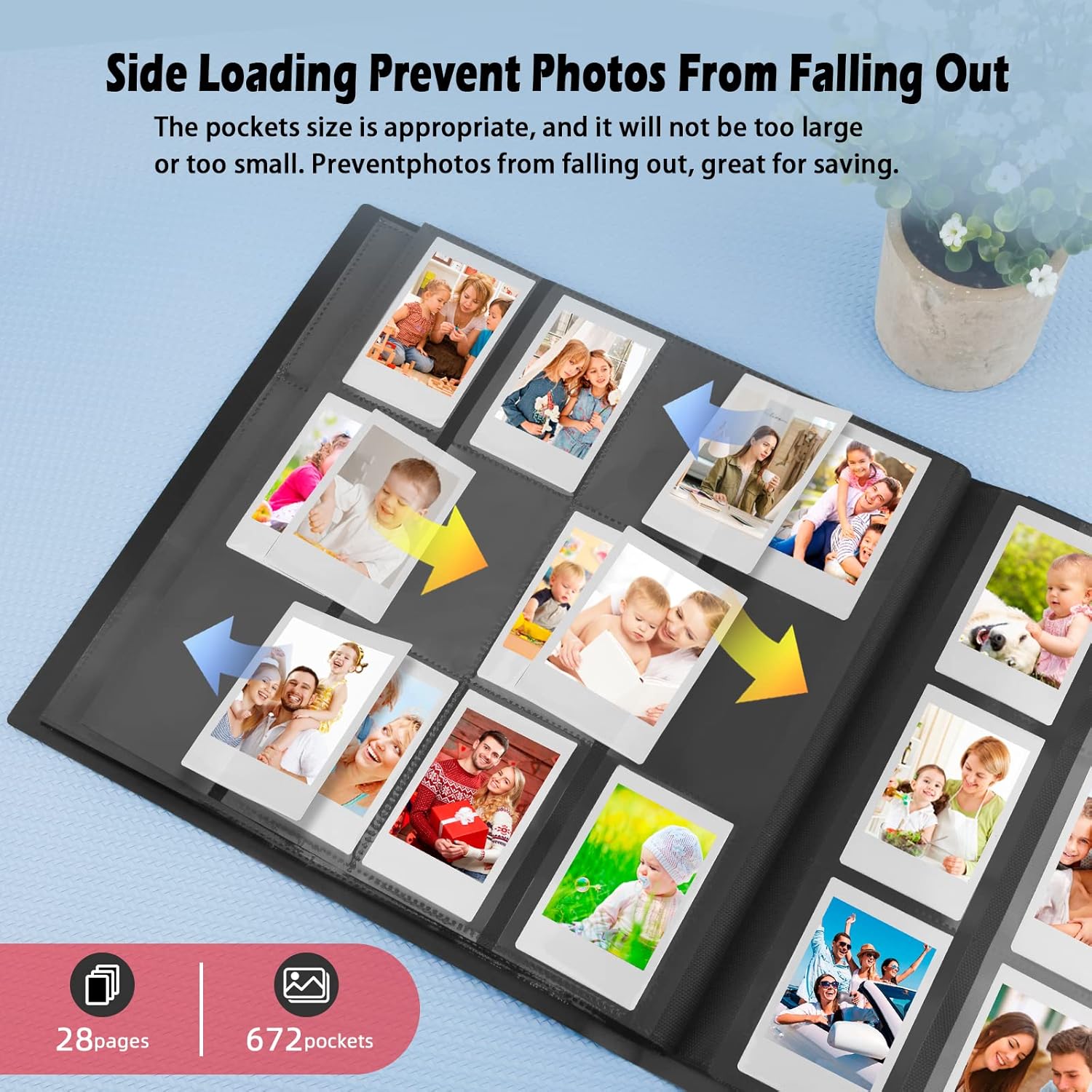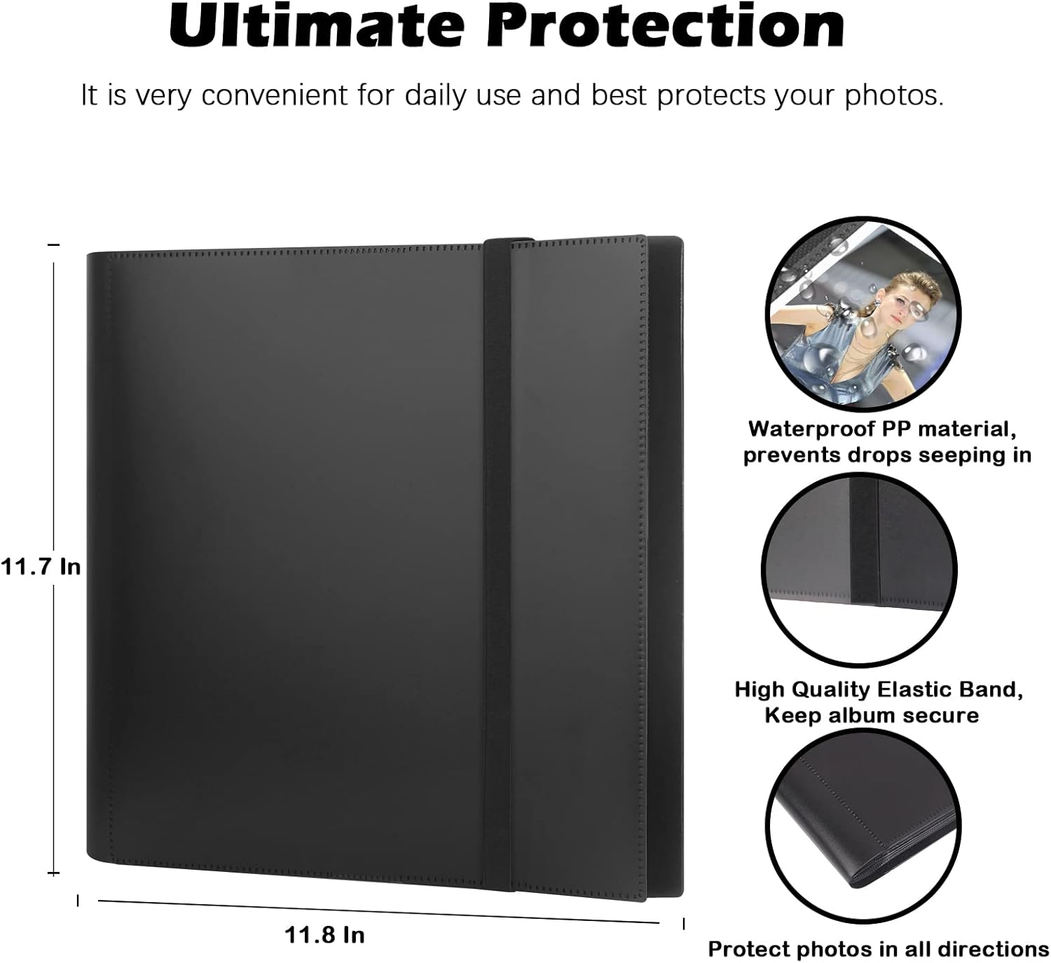 Ultimate Protection Your favorite photos The album cover is built of resistant but flexible polyi with very strong and not easy to tear. Side load pocket design to prevent cards from falling easily. The elastic belt keeps the album closed when it is not in use.