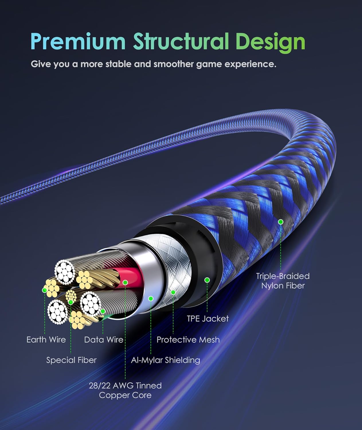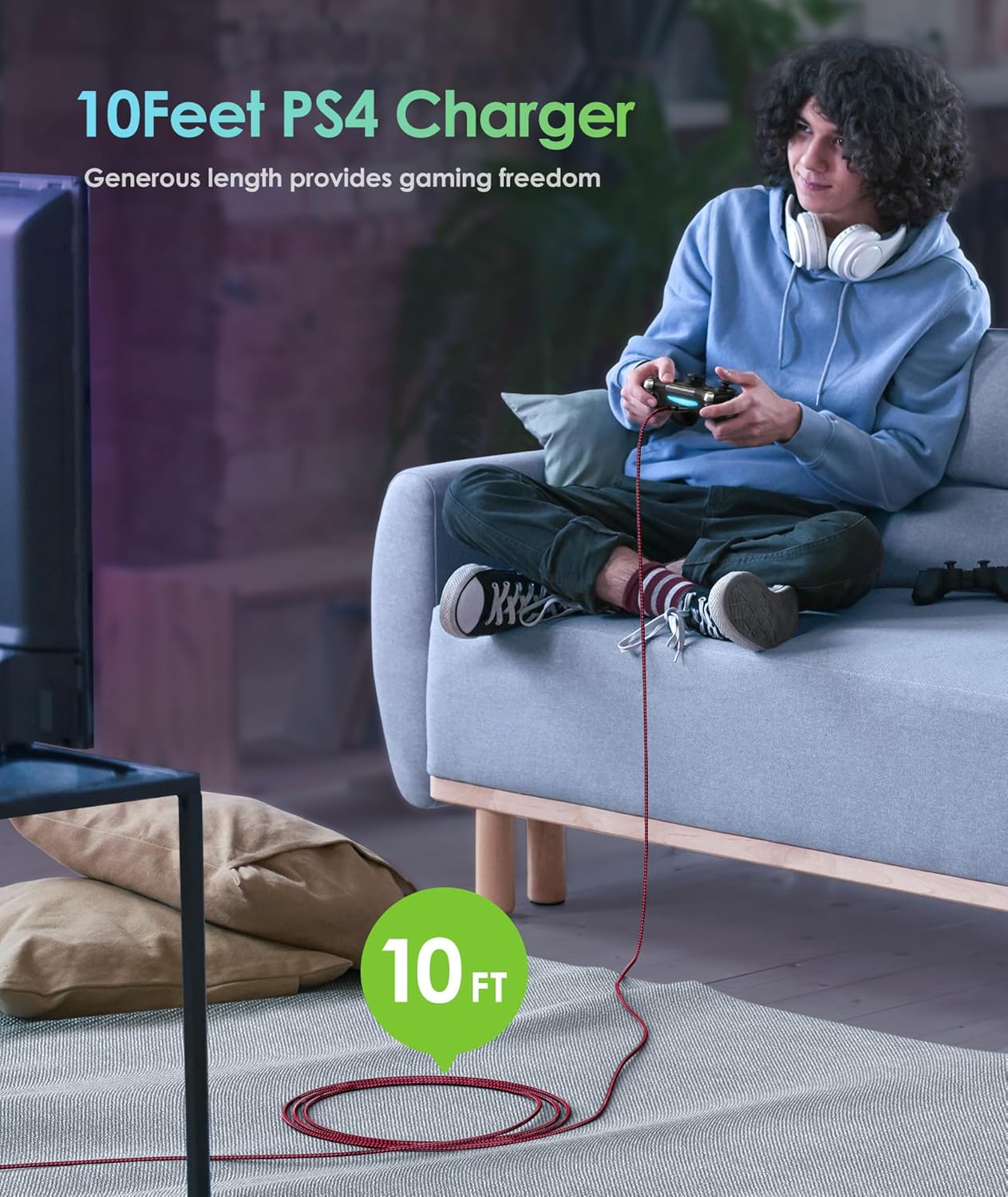 Extra Long 10 Feet: More convenient and comfortable! Allows you to play while sitting on the couch or lying in bed. Allows you to stay focused on the game.