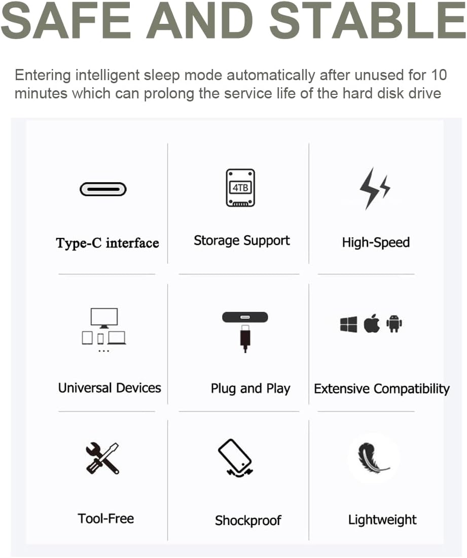 Ultra fast data transfers: it works with USB 3.1 and type C technology, this USB3.1 hard drive is much faster than, but still compatible with USB 2.0 and USB 3.0 units, which allows a super fast to up to 6GBPS speed to up to 6GBPS