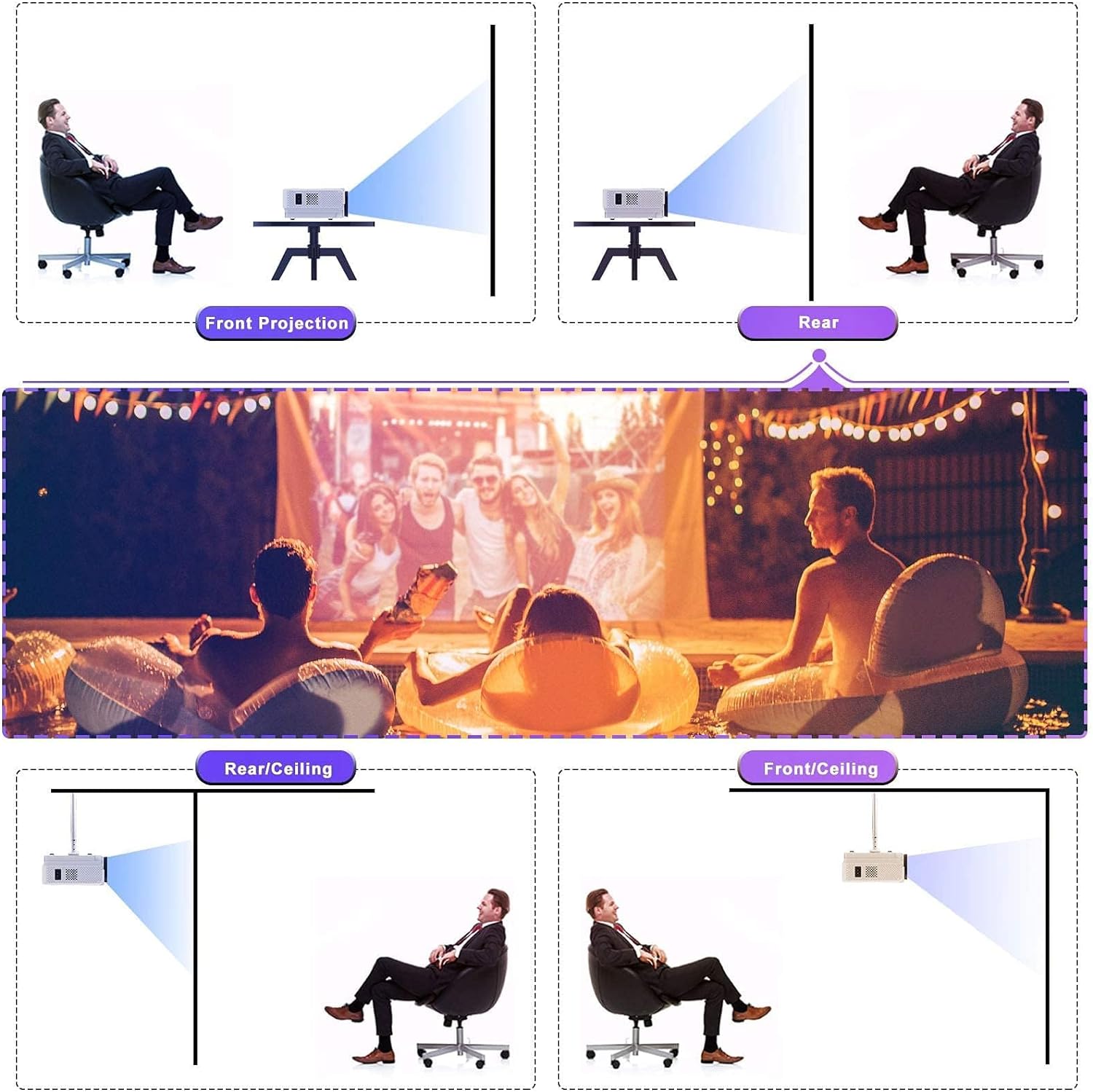 LED Projector: Our LED projector with the highest native resolution that can satisfy all your home entertainment games or indoor and outdoor movies. It is also ideal for education and business in small dark environments.
