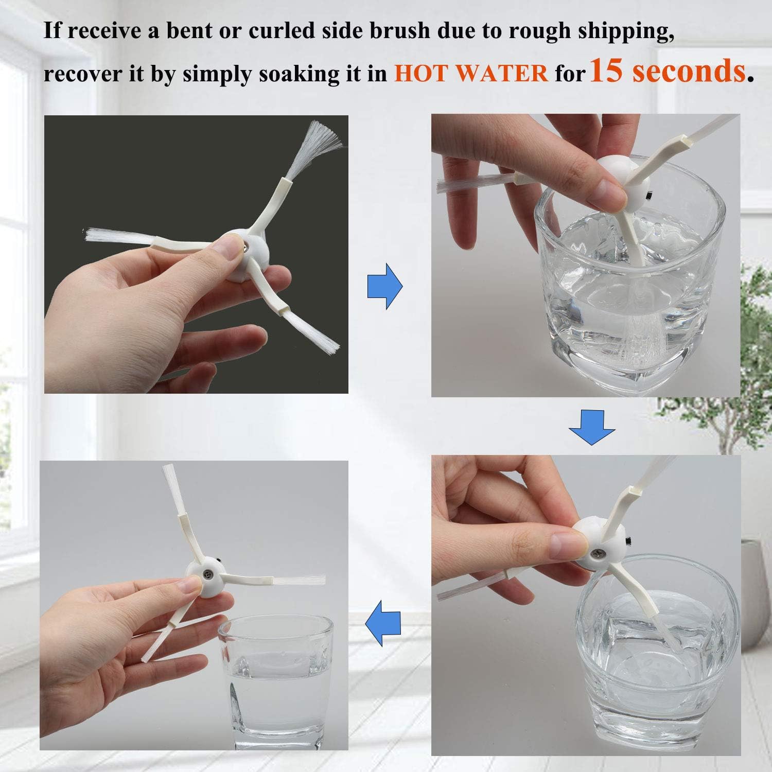Quality above all with our powerful and silent roller brush and the cleaning tools provided, they no longer have to worry that their vacuum is stuck by the hair. Designed to survive our competitors, our side bristles are made of rubber. If you receive a folded or curly side brush due to approximate shipment, simply recover it simply soaking it in warm water for 15 seconds.