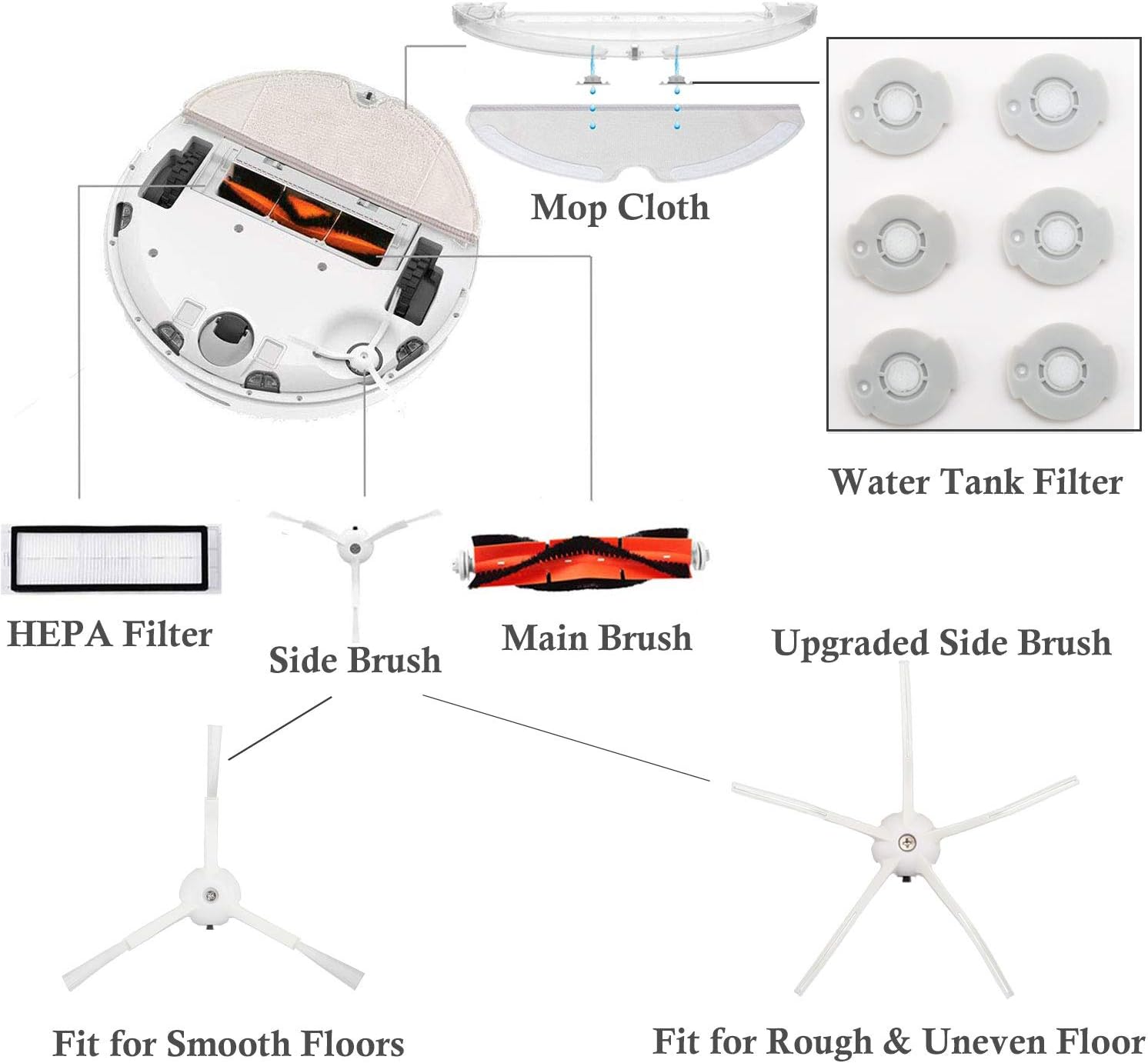 Broad compatibility Our replacement parts accessories kits are designed to compatible with Xiaomi Mi Mijia Roborock Q5 S4 S5 S5 Max S6 Pure S6 Maxv E2 E3 E4 E5 E20 E25 E35 E35 S50 S65 Robot Vacuum To keep its emptiness running at a high level. (No compatibility with Roborock S7 and S7+)