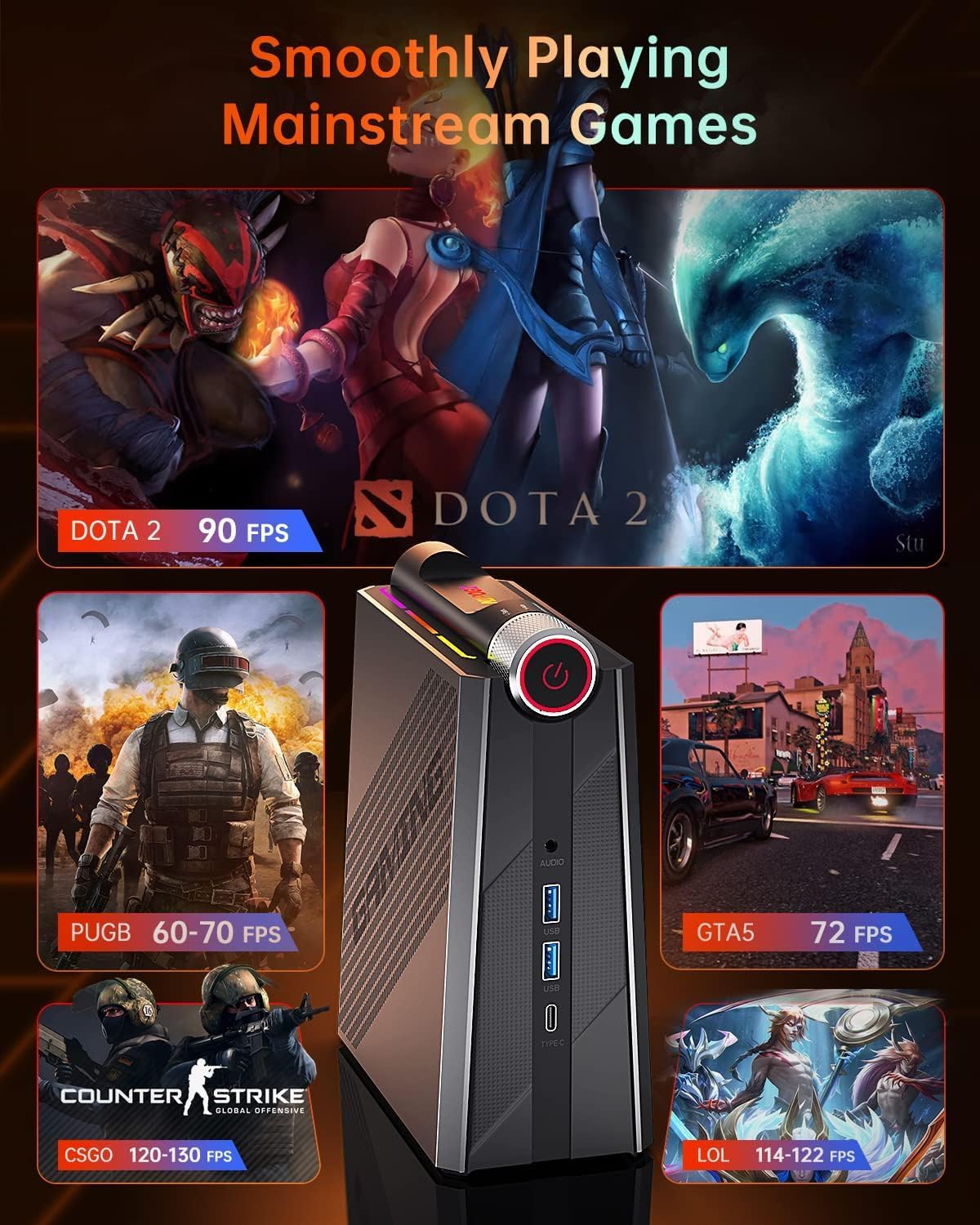 【Three Modes for Versatile Use】AM08PRO small desktop computer features three different modes to suit your needs. Use SILENT MODE for watching movies and doing light office work, AUTO MODE for medium office software like 3D viewing, and PERF MODE for gaming. Easily switch between modes for optimal power saving and performance. The unique vertical design and stunning RGB lighting effects make this mini PC a stylish addition to any setup.
