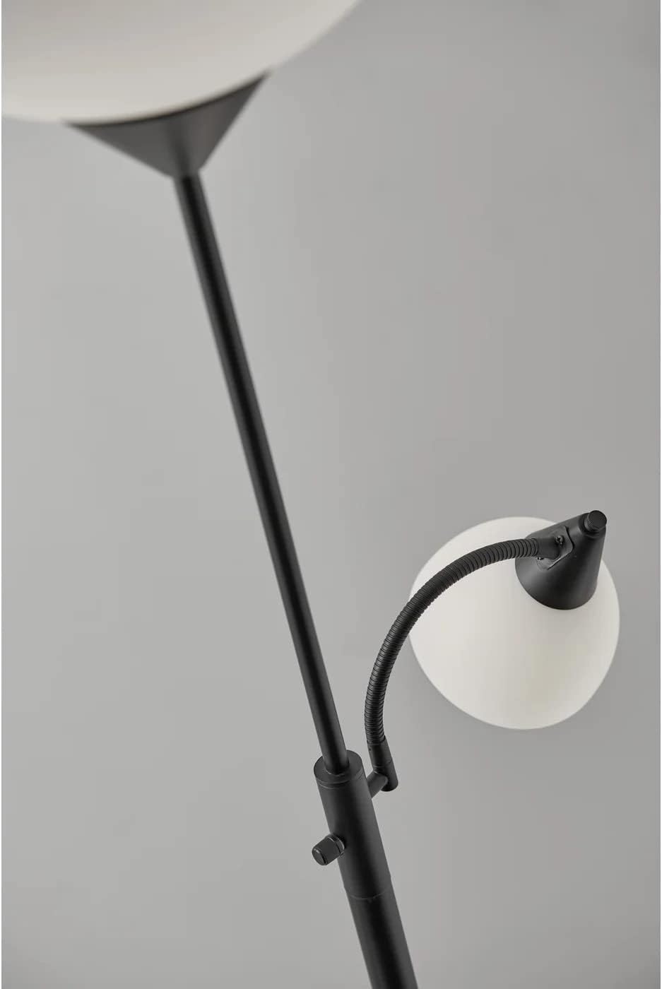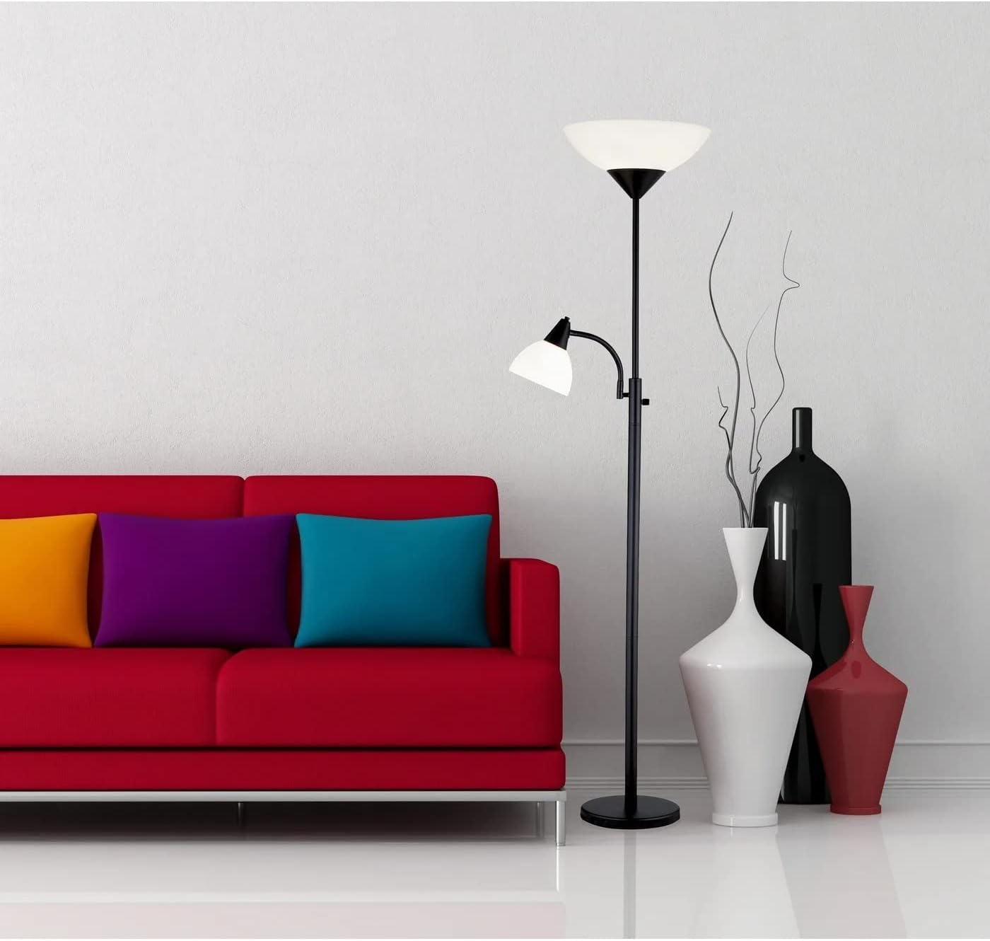 Decorative Tall Lamp: The Piedmont Combo floor lamp is a flexible and elegant lighting solution. Two dimmable or 150-watt LED bulbs are needed on top for ambient lighting, but it doesn't stop there. The adjustable gooseneck reading light will accept a 60-watt incandescent bulb or equivalent for task lighting. The black pole body and gooseneck are topped with white acrylic shades.