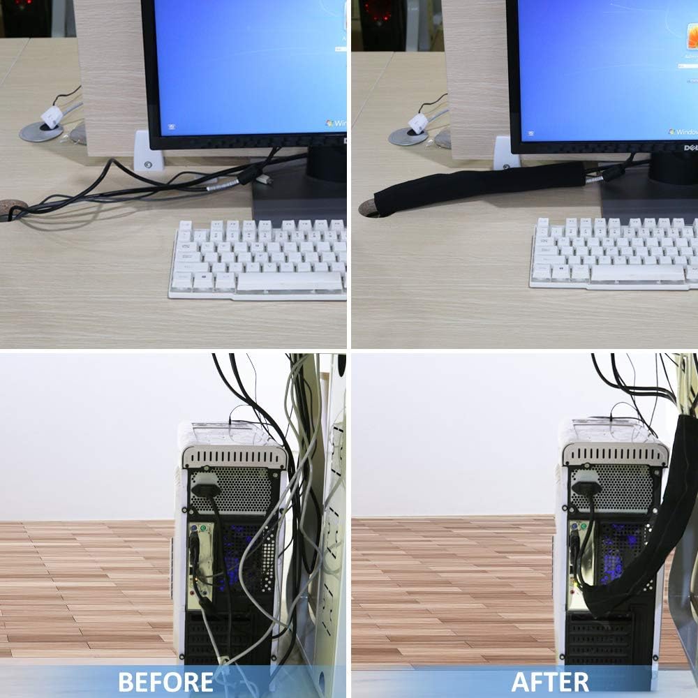 【CLEAN AND TIDY】118″ long, 5.3″ wide, 1.5″ diameter cable management sleeves are a simple and convenient solution for your cables, making all cables wrapped and hidden in one sleeve, no more messy and tangled cables.