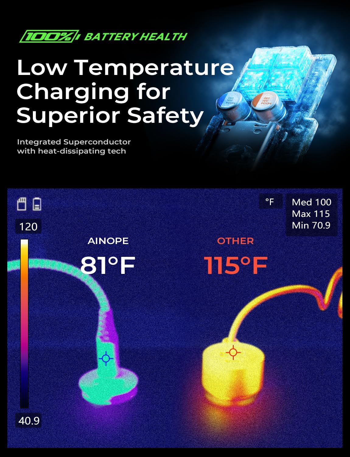 [INTEGRATED SUPERCONDUCTOR TECH, SUPERIOR SAFETY]: AINOPE’s proprietary ISEM2.0 adopt integrated superconductor material engineered for reduced resistance, boosting charging efficiency and superior temperature control ensuring safer charging and protecting your device battery health, plus, this car charger USB C for iPhone 15 16 has been recognized by official USB-IF and Qualcomm and passes over 16 tests, allowing you to power your devices confidently.