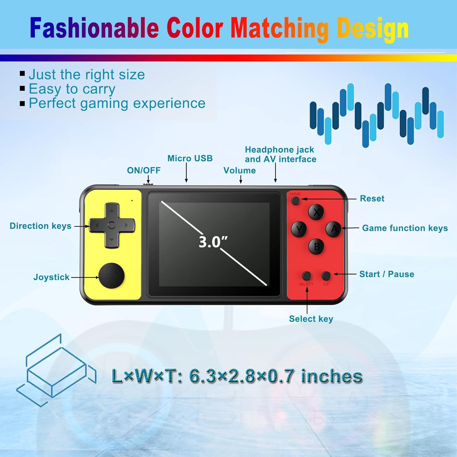 💦User-friendly design: Regardless of the screen size (3.0 inches) or the size and layout of the buttons, this game console fully considers the child's portability and practicality. Make children feel more comfortable to use.