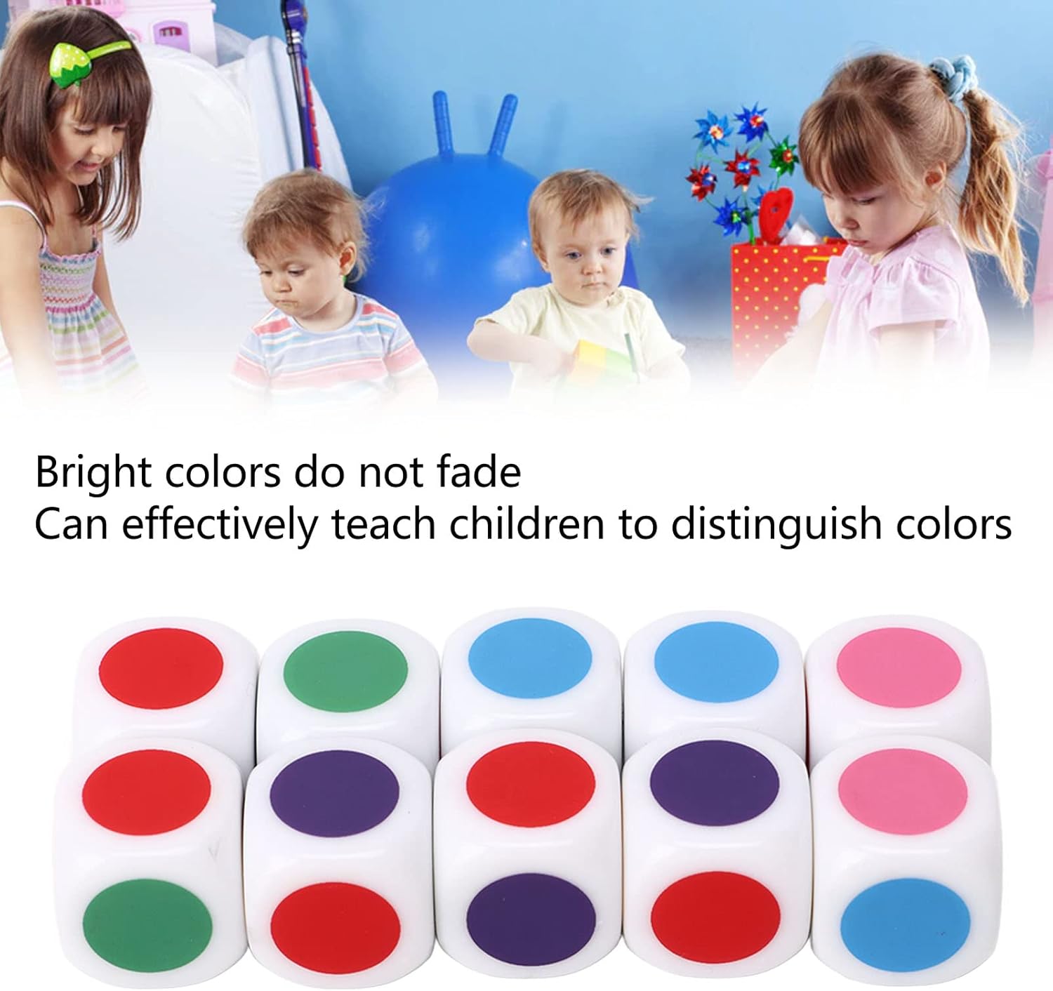 TEACHING COLORS: The six-color dice have bright colors that do not fade and can effectively teach children to distinguish colors.