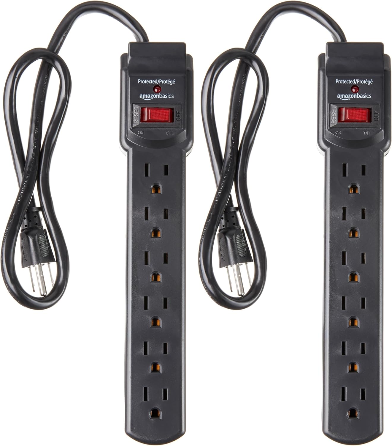 Amazon Basics 6 outlet, 200 Jule arises Power Strip protector, 2 feet, black – 2 package