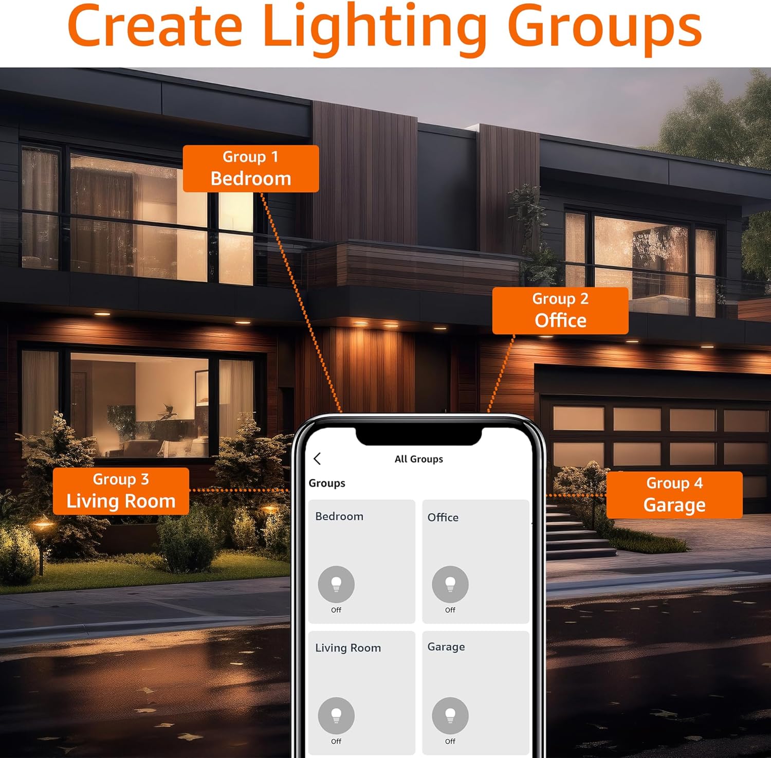 GROUP CONTROL: Create groups in the Alexa app to combine lights, allowing you to control lights in each room or all the lights in your home with a single voice command or through the app. When it’s time for bed, just say “Alexa, turn off bedroom” OR use the Alexa app to turn off bedroom lights at once.