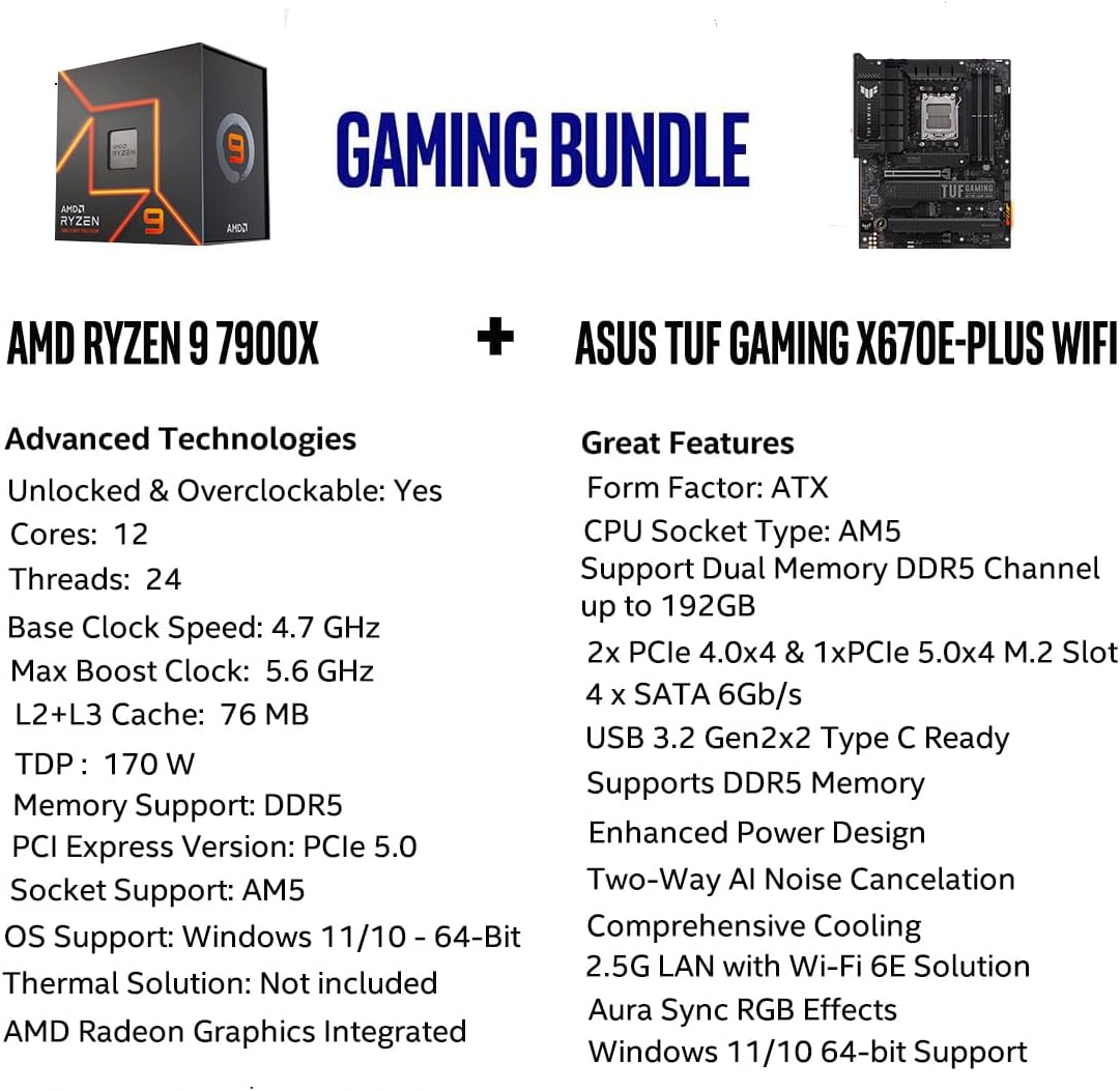 AMD Ryzen 9 7900X Micro Center CPU Processor Package with ASU…