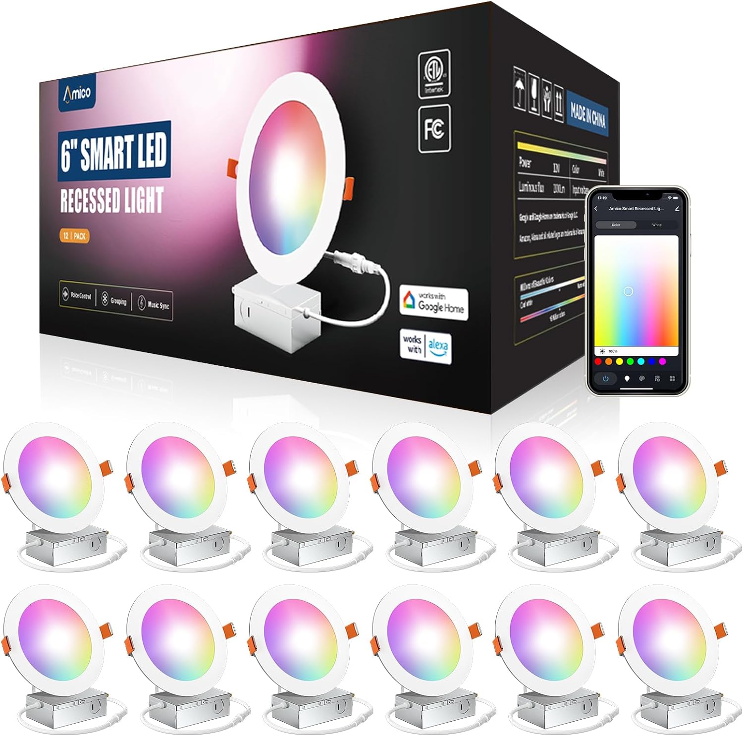 Amico 12 Pack 6-Inch Smart LED Recessed Lights,…