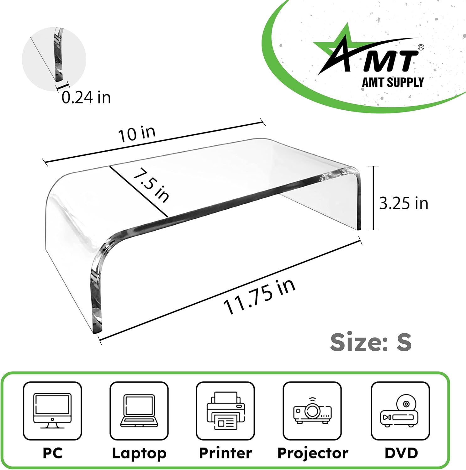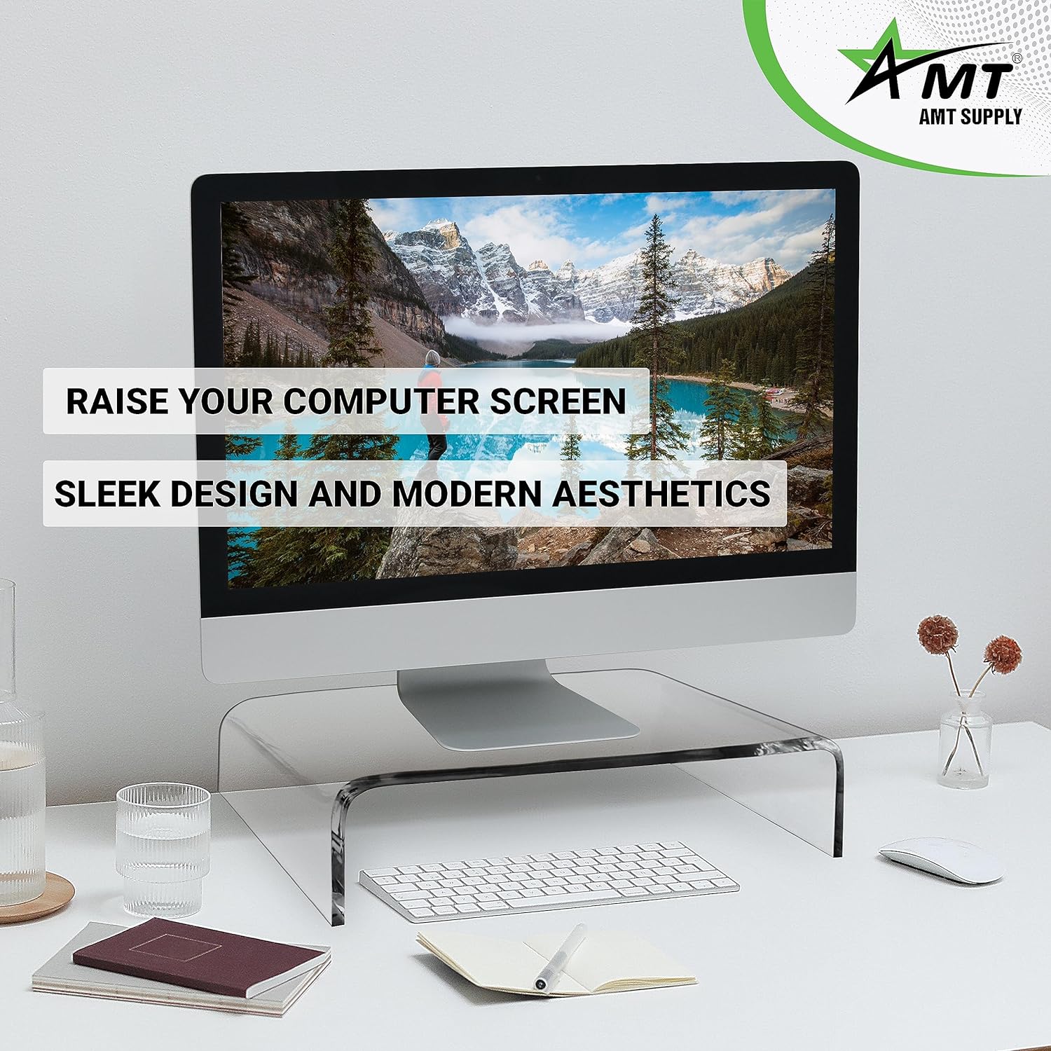 ✨100% Grade A Acrylic✨: AMT acrylic monitor stand is made of fully durable 100% Class A acrylic material. This overcomes the strength of wood and provides a lighter option compared to delicate glass mounts. Instead of the usual combination of acrylic and plastic, which many stands use, this stand maintains its pure acrylic composition, ensuring unparalleled strength and reliability.