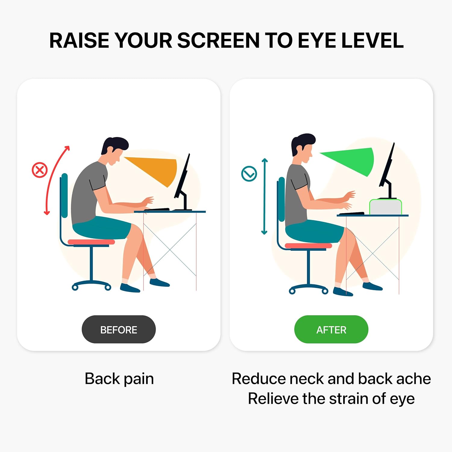 Stand monitor can help you reduce your neck, back and visual fatigue and any pain of discomfort.