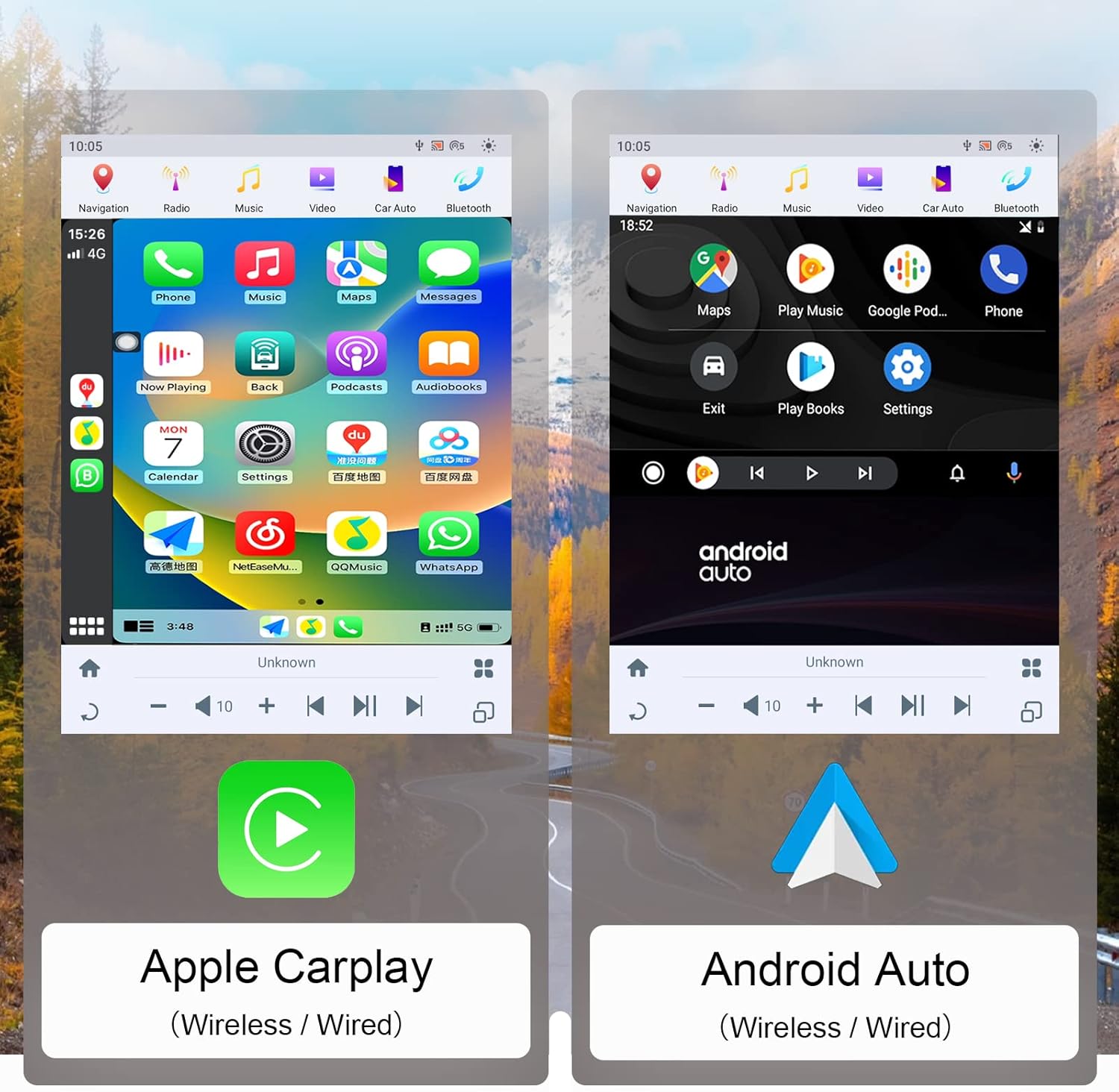【Wireless+Wired Carplay & Android AUTO】After USB cable or Bluetooth connection, click Car AUTO to automatically enter connection. For phones with Android system, you need to download Android Auto on your mobile phone.