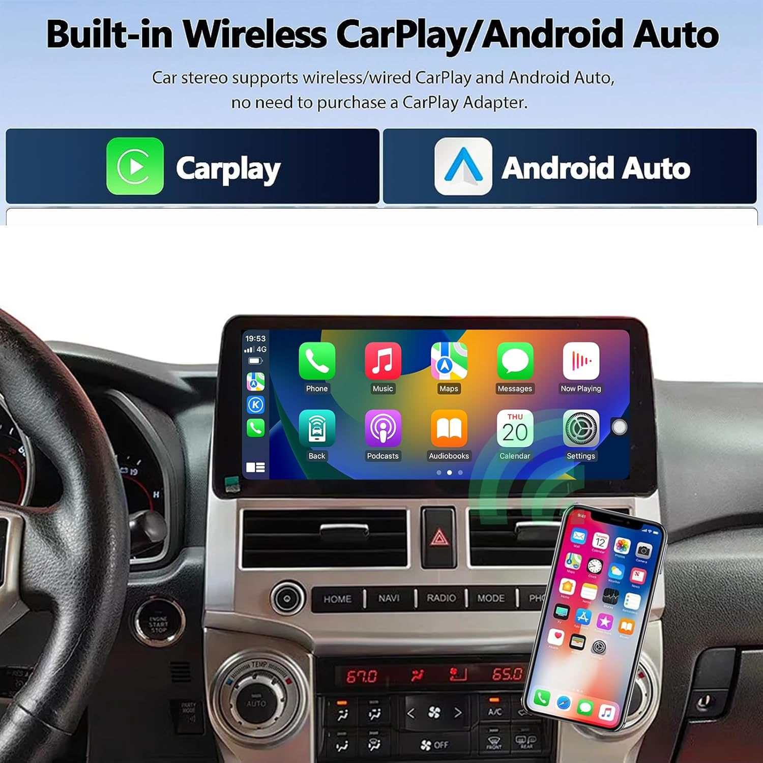 Apple Wired/Wireless Radio Carplay and Android Auto, perfect connection between your smartphone and car browser. You can also wake up the Siri voice assistant or a Google assistant to operate applications on the radio, easily use GPS navigation, calls, message, music and many more functions while keeping their hands free to drive insurance.