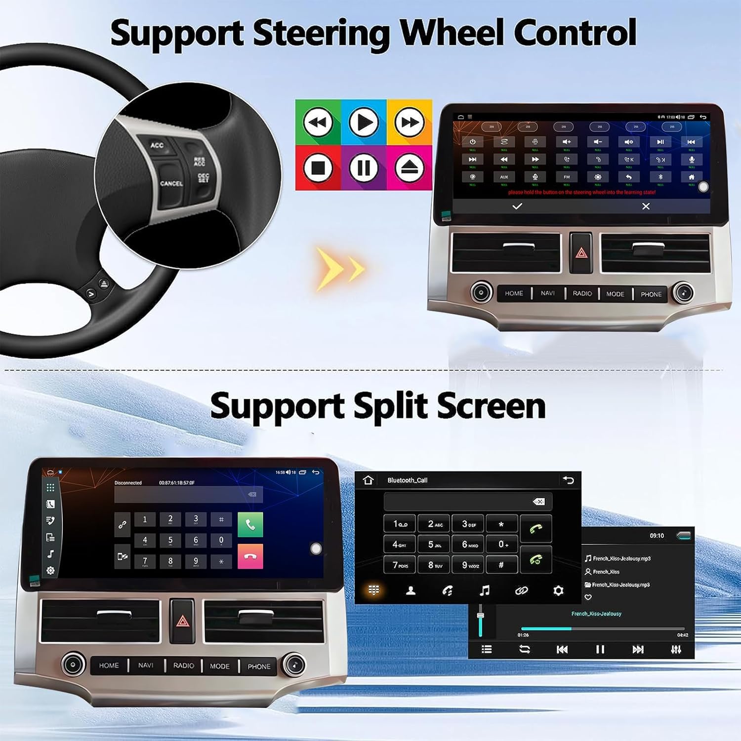 🚗【 Car-Play & Android Auto】 Android Autoid stereo squeezed in Apple Car-Play and Android Auto. It keeps you awake with useful characteristics that includes an incredibly intuitive form of accessing calls, music, video and applications. It makes your driving easier, safer and converts every trip into a pleasant experience.