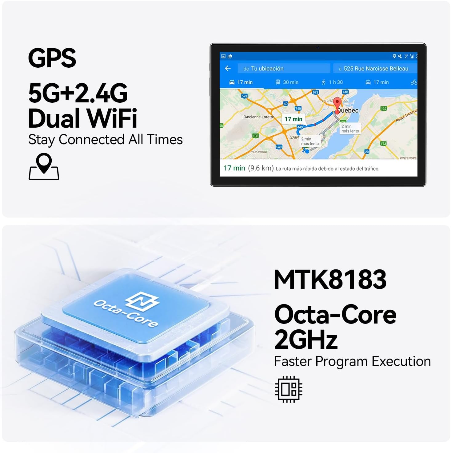 Multifunctional 2 in 1 tablet: 2 in 1 tablet offers support for Wi -Fi and Bluetooth of 2.4/5GHz, ensuring a stable and fast network connection. Equipped with a Bluetooth keyboard, a wireless mouse and a folding protection case, it can flexibly converted the tablet into portable mode or computer mode, allowing efficient work and learning while providing unlimited characteristics and abilities. In addition, the tablet presents a divided screen mode, which allows you to run two different applications simultaneously on a screen, speeding up multitasking and improving work efficiency.