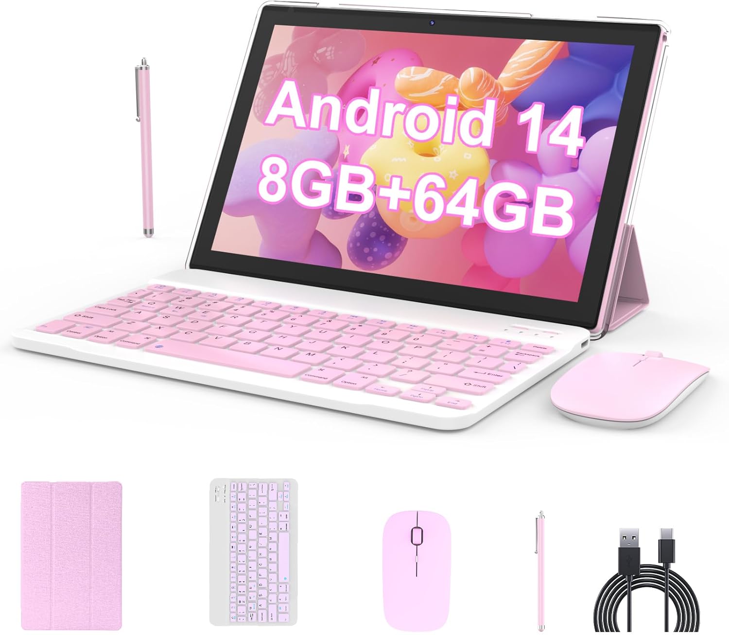【Larger internal memory of 64 GB】 : Android 14 Tablet with 4+4 GB of RAM and 64 GB of internal storage can download all the applications you need, such as Netflix, Facebook, Zoom, etc., from Google Playstore Preinstalled to facilitate discharge. This tablet comes with the TF card slot, admits the 8GB-1TB TF card to give you more space to store your photos, novels, videos and several files.