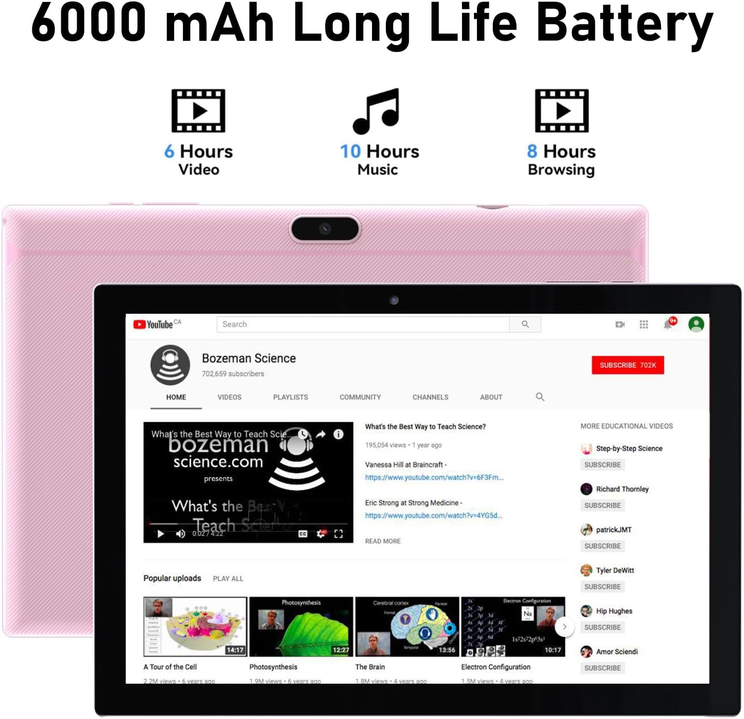 【Long-lasting battery duration Updated : : : Android tablet with a continuous continuous update of 6000 mAh long battery, with a USB-C load port, which provides users with greater entertainment and work time and shorter load time, a 10-inch tablet with parents control function can better plan the use of children's time, not an excessive reproduction table.