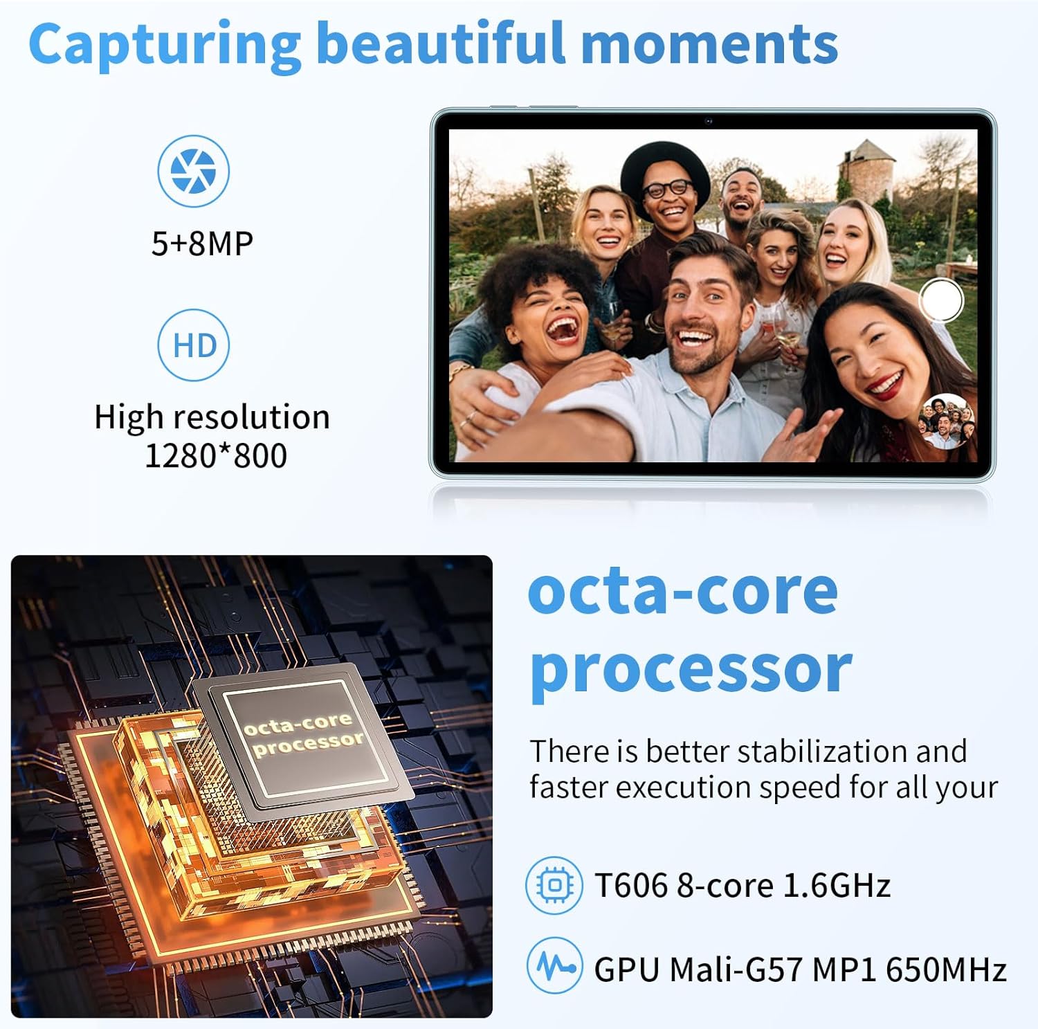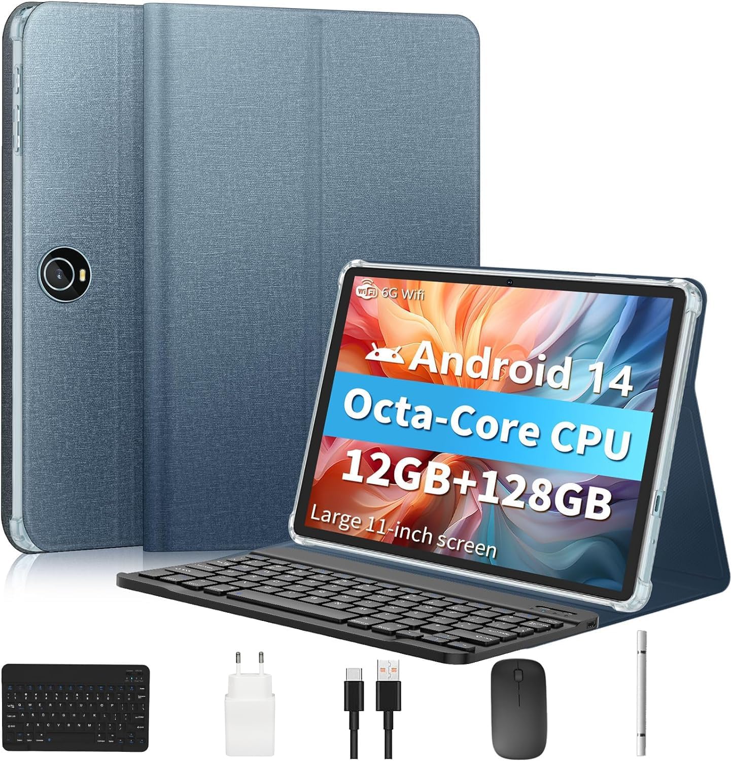 Octa-Core Processor: The 11-inch tablet is powered by a 2.0GHZ T606 octa-core processor. This tablet is equipped with 12GB RAM (6GB physical memory + 6GB virtual memory), 128GB ROM, supports 1TB TF card expansion (not included). Make you save more things you love. The latest tablet with Android 14 becomes faster and more responsive.