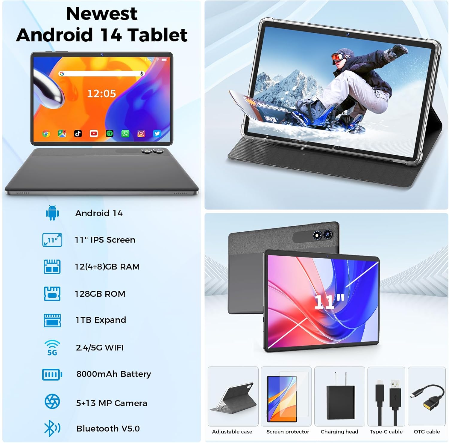 Android Tablet, 11 Inch Android 14 Tablet, 12GB RAM+128GB ROM…