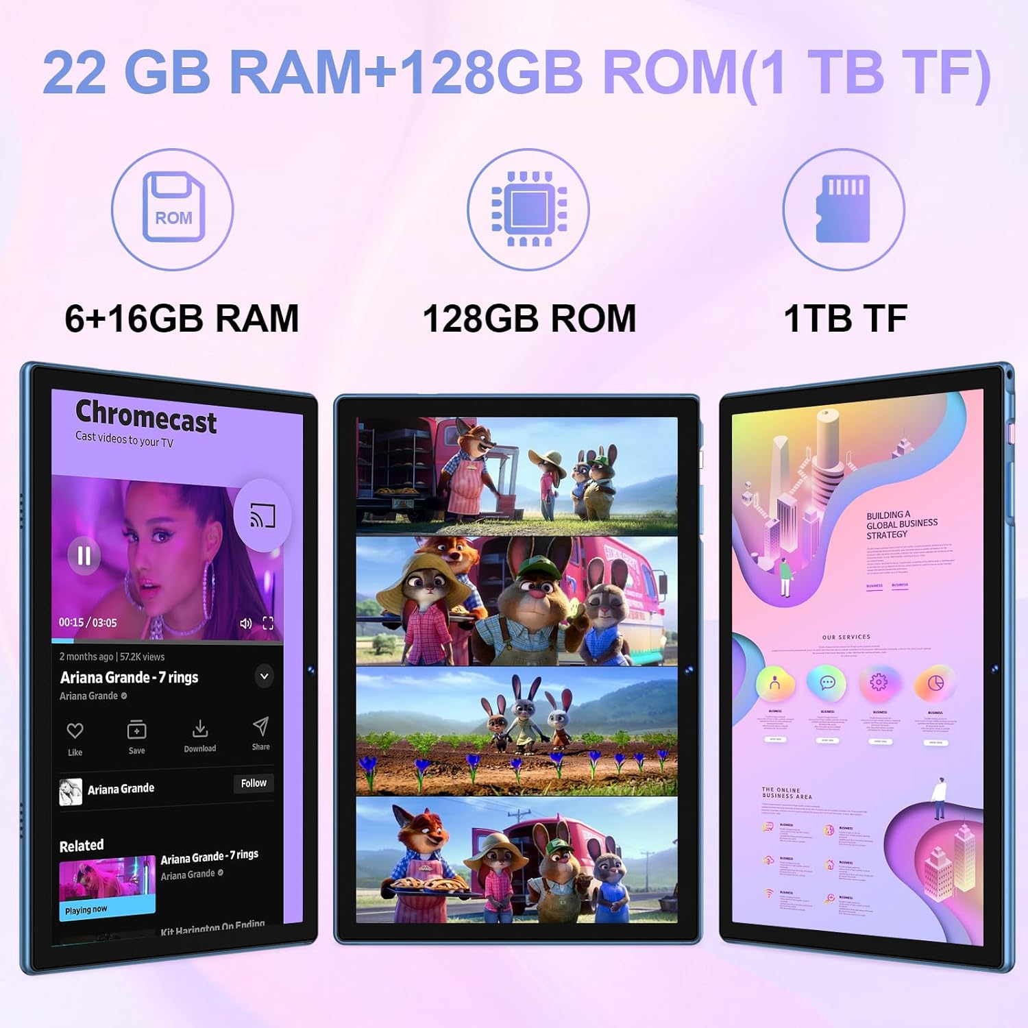 Ample Storage and GMS Certification: With 22GB RAM and 128GB ROM, supporting up to 1TB of expandable storage, this tablet offers plenty of space for apps and media. GMS certification guarantees seamless access to Google services