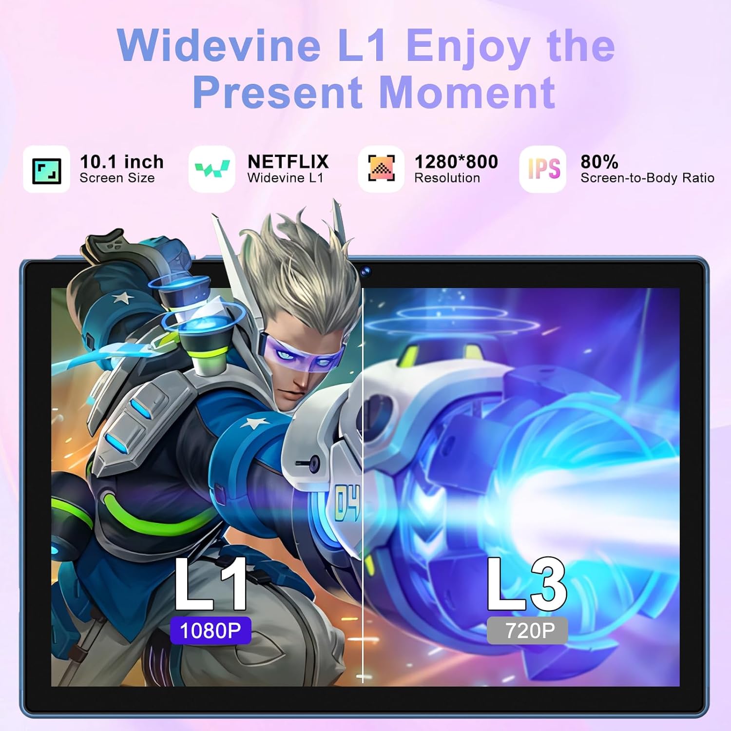 HD and Widevine L1 Screen: With a 10.1-inch 1280×800 tempered glass screen, the screen is durable and scratch-resistant. Enjoy an immersive viewing experience with L1 support, perfect for streaming your favorite content in high definition