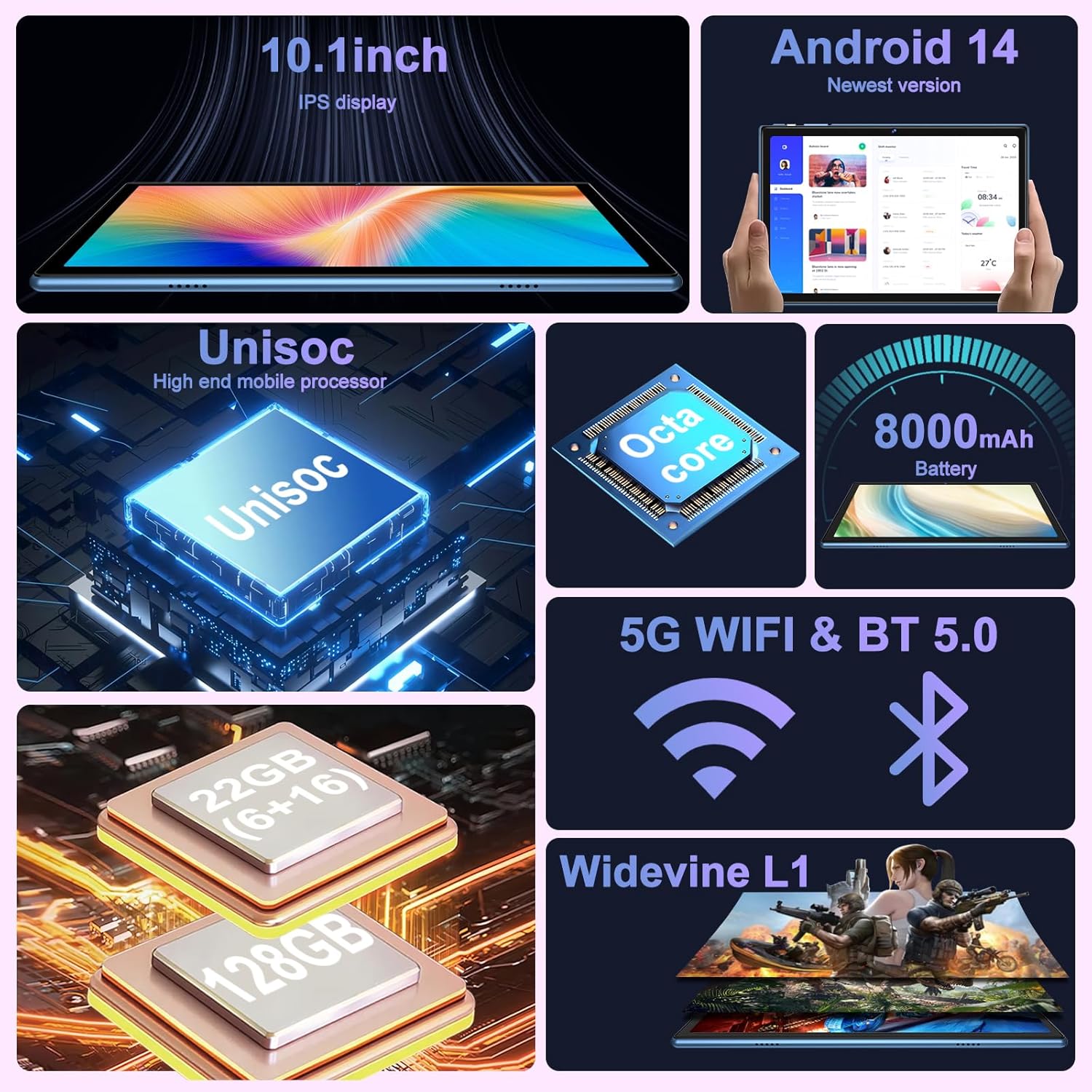 Android Tablet 14 10.1 Inch Tablets with 22GB RAM 128GB ROM,…