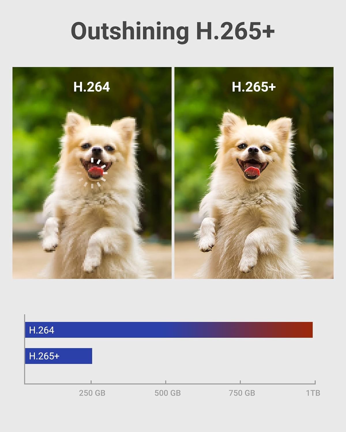 【H.265+ for Smoother & Longer Recording】Upgraded to H.265+, the recording time is lengthened, and the bandwidth is lessened. And an included 1TB hard drive saves you extra expense. (Support up to 10TB HDD, package comes with 1TB HDD.)