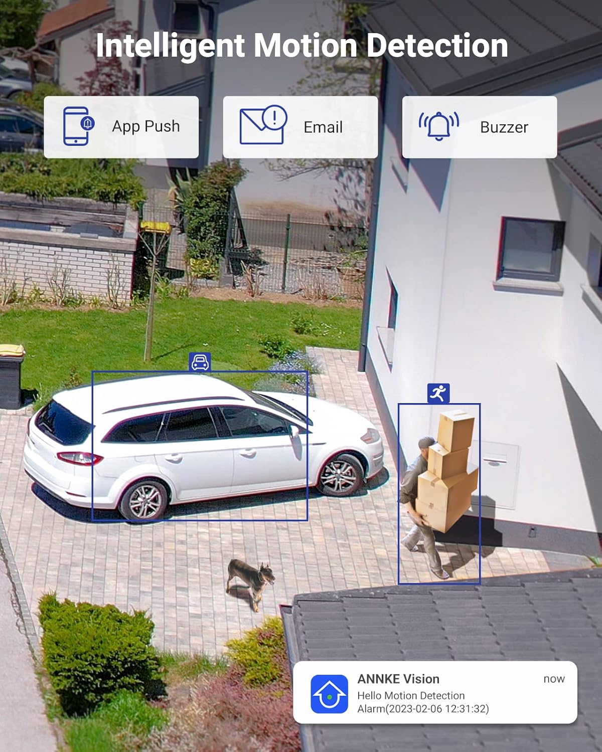 Up the Accuracy and Peacefulness: With advanced algorithm, the DVR security camera system detects human/vehicle at 99% accuracy, which tells you real alerts via app push and email. No more false alerts sent with specific zone setting