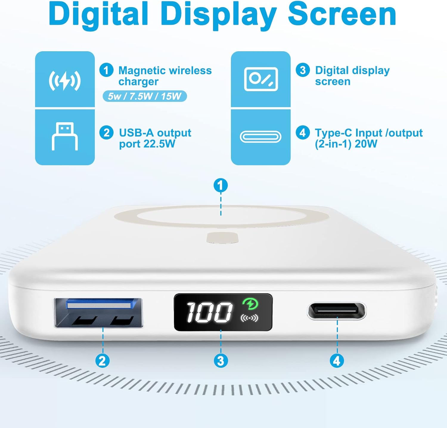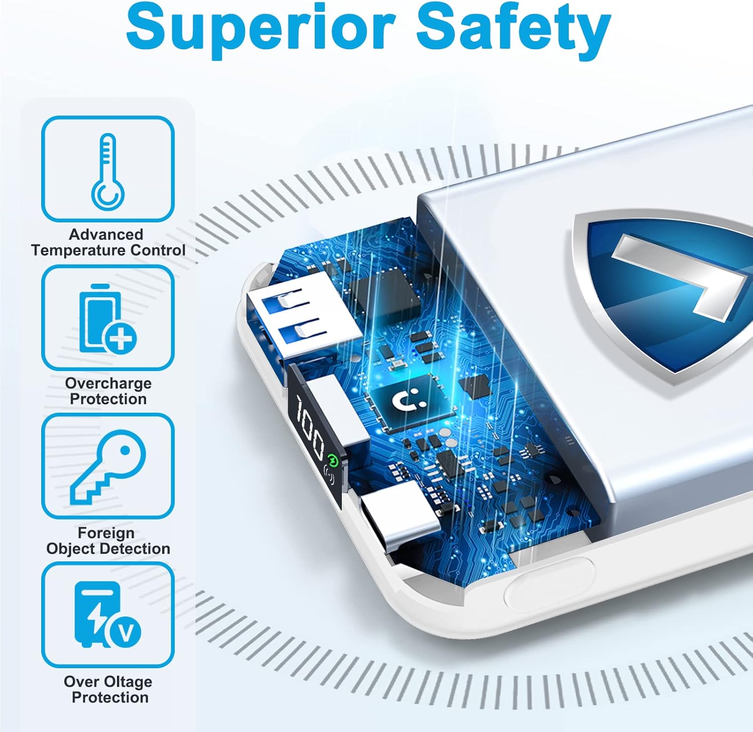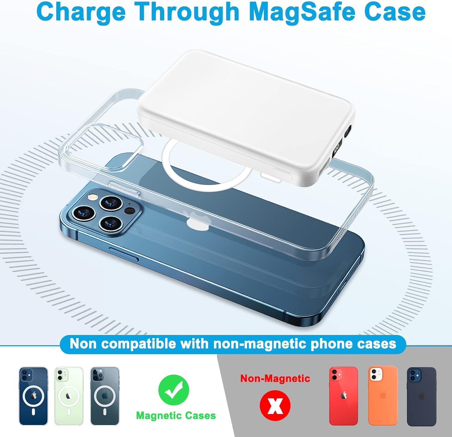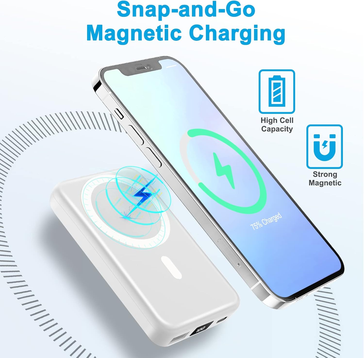 Superior Safety: Our Mag-Safe wireless phone charger and power bank charger with high-quality chips provide magnetic power bank safety protection including overcharge protection, short circuit protection, reset protection, high temperature protection, etc.