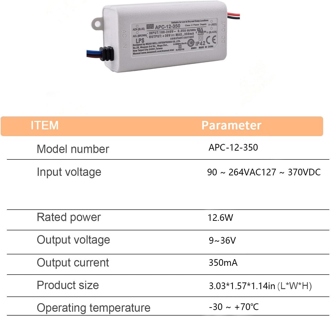 APC-12-350 Compact LED driver, 12.6W, 9-36V, 350 mA, constant …