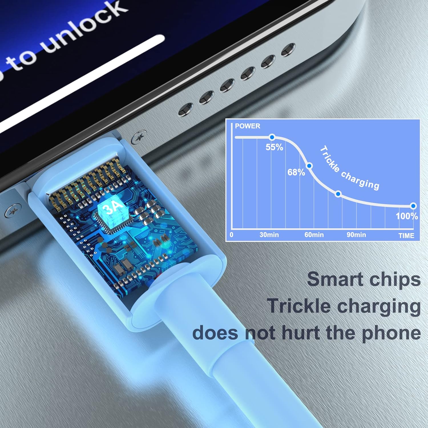 ✿【Fast Charging iPhone Charger】: The iPhone charger cable is made of high-purity copper core and smart chip, with overcharge protection, stable current protection, automatic switching and battery protection, and can support up to 2.4A fast charging and 480Mbps transfer speed.
