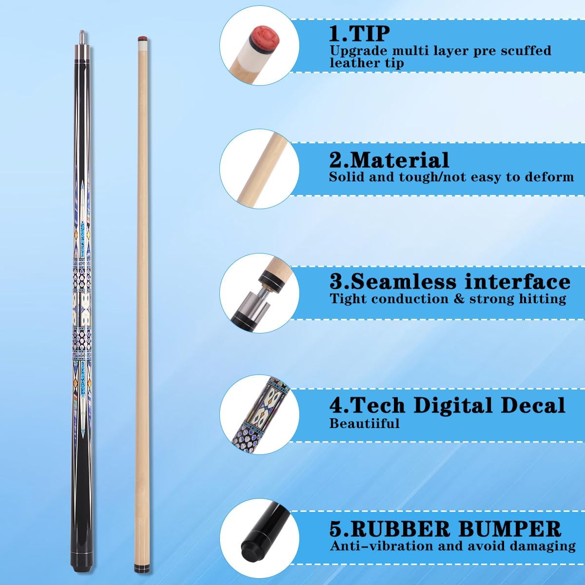【Premium material】: Made of Wood of Canadian Arce of hand selected by hand with mango without wrap. , finished with matte paint. It has a two -piece swimming pool stick design for easy transport and storage.