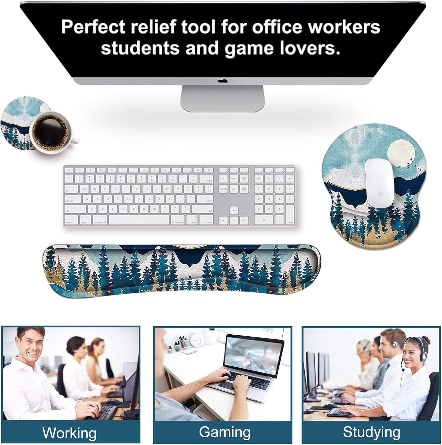 【COMFORTABLE ERGONOMIC DESIGN】: The keyboard wrist support and mouse wrist rest pad set are designed according to ergonomics, soft rebound memory foam keeps your hand in a neutral position for ergonomic comfort, helps to reduce pressure for worker, gamer, writer, editor, OL, programmer who is engaged in long time typing work. providing maximum comfort for office or home use.