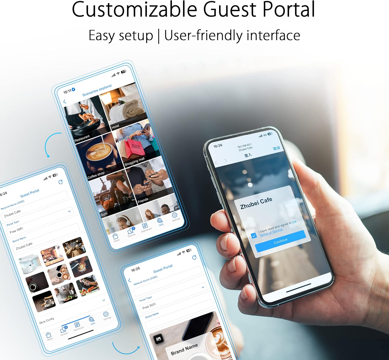 Customizable Guest Portal – Customize the SSID, portal type, branding, and templates to fit your business style.