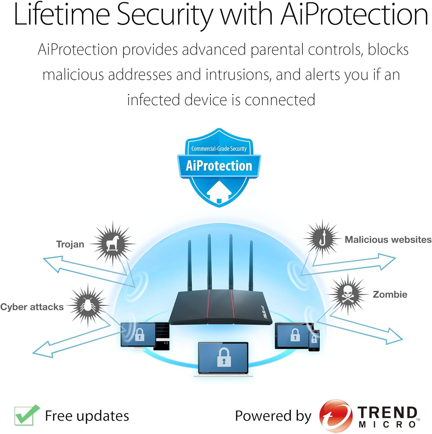 Business-grade security anywhere: Protect your home network with AiProtection Classic, powered by Trend Micro. And when you’re away from home, ASUS Instant Guard gives you a secure VPN with just one click.