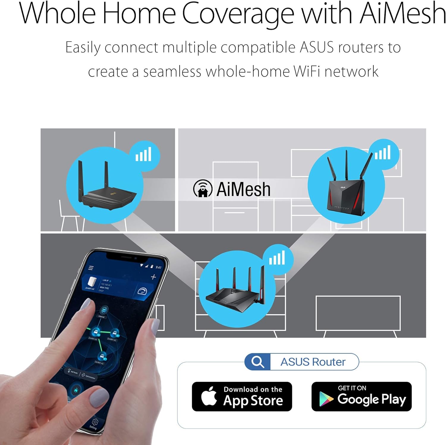 Ultra-fast WiFi speed: The RT-AX55 supports 80MHz bandwidth and 1024-QAM for much faster wireless connections. With a total network speed of approximately 1800Mbps: 574Mbps on the 2.4GHz band and 1201Mbps on the 5GHz band.