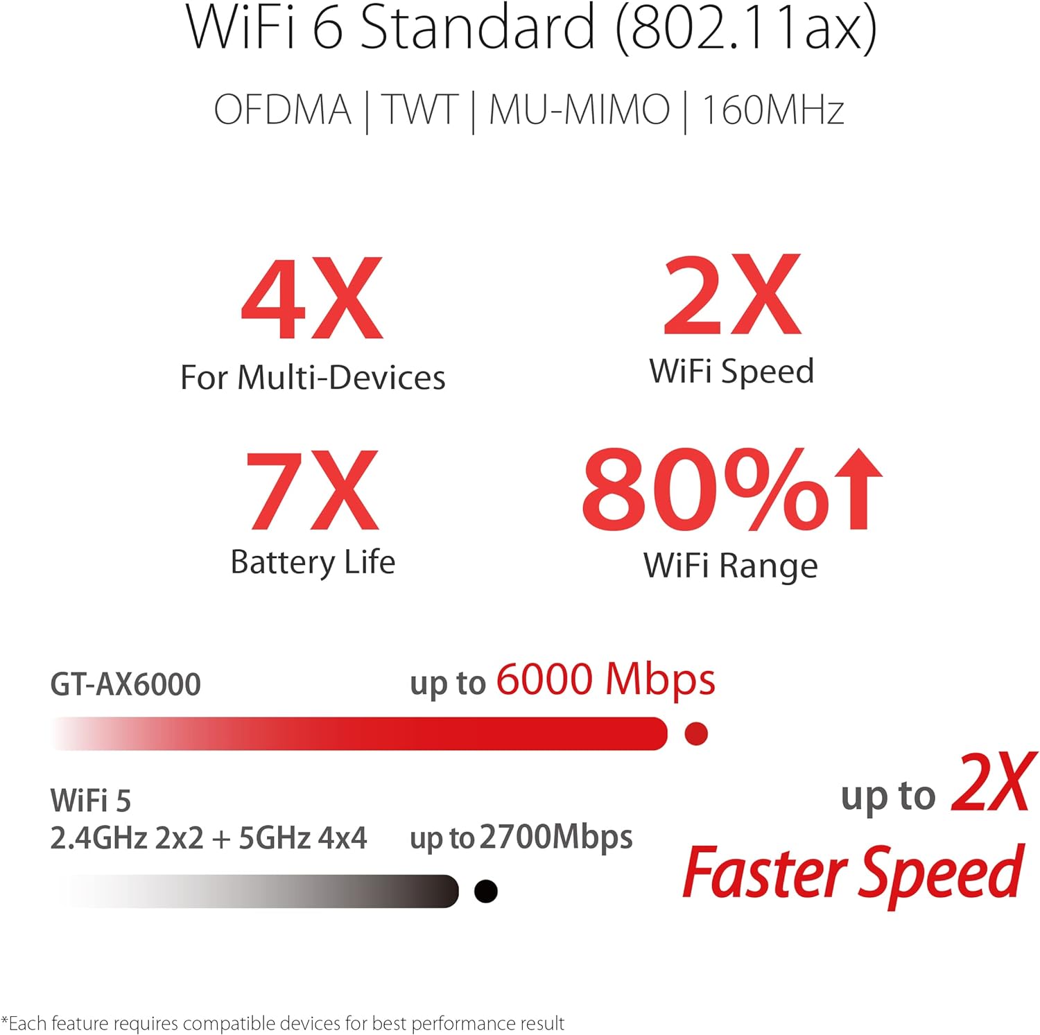 Next-gen WiFi 6: Enjoy blazing-fast speeds of up to 5700Mbps with the latest WiFi 6 (802.11ax) and 160MHz channels. Power supply: 19V with maximum current of 2.37A / 19.5V with maximum current of 2.31A or 12V with maximum current of 3A / 19.5V with maximum current of 2.31A.