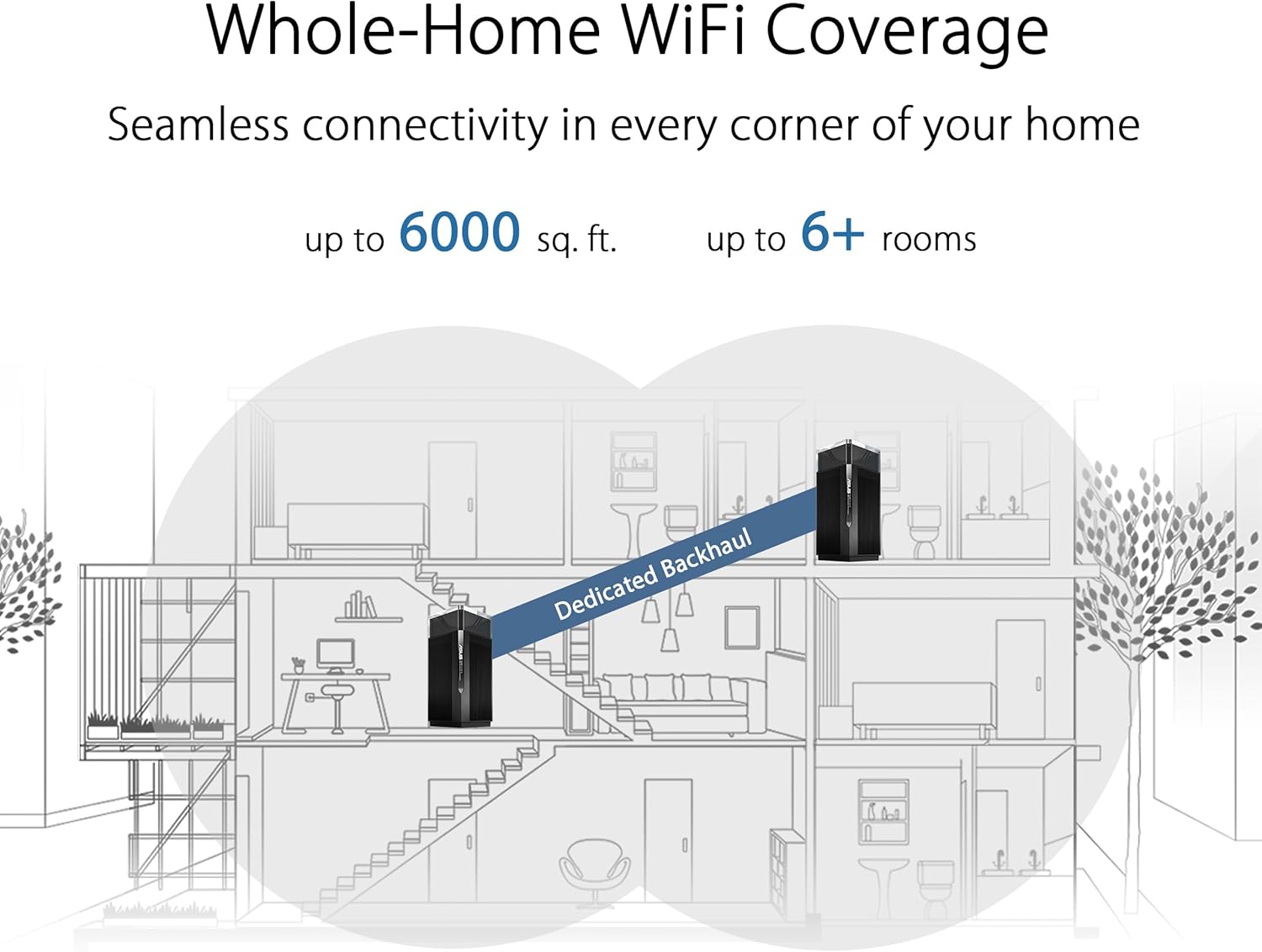 The exclusive ASUS RangeBoost Plus improves WiFi signal range by up to 38%, offering extended coverage of up to 6,000 square feet.